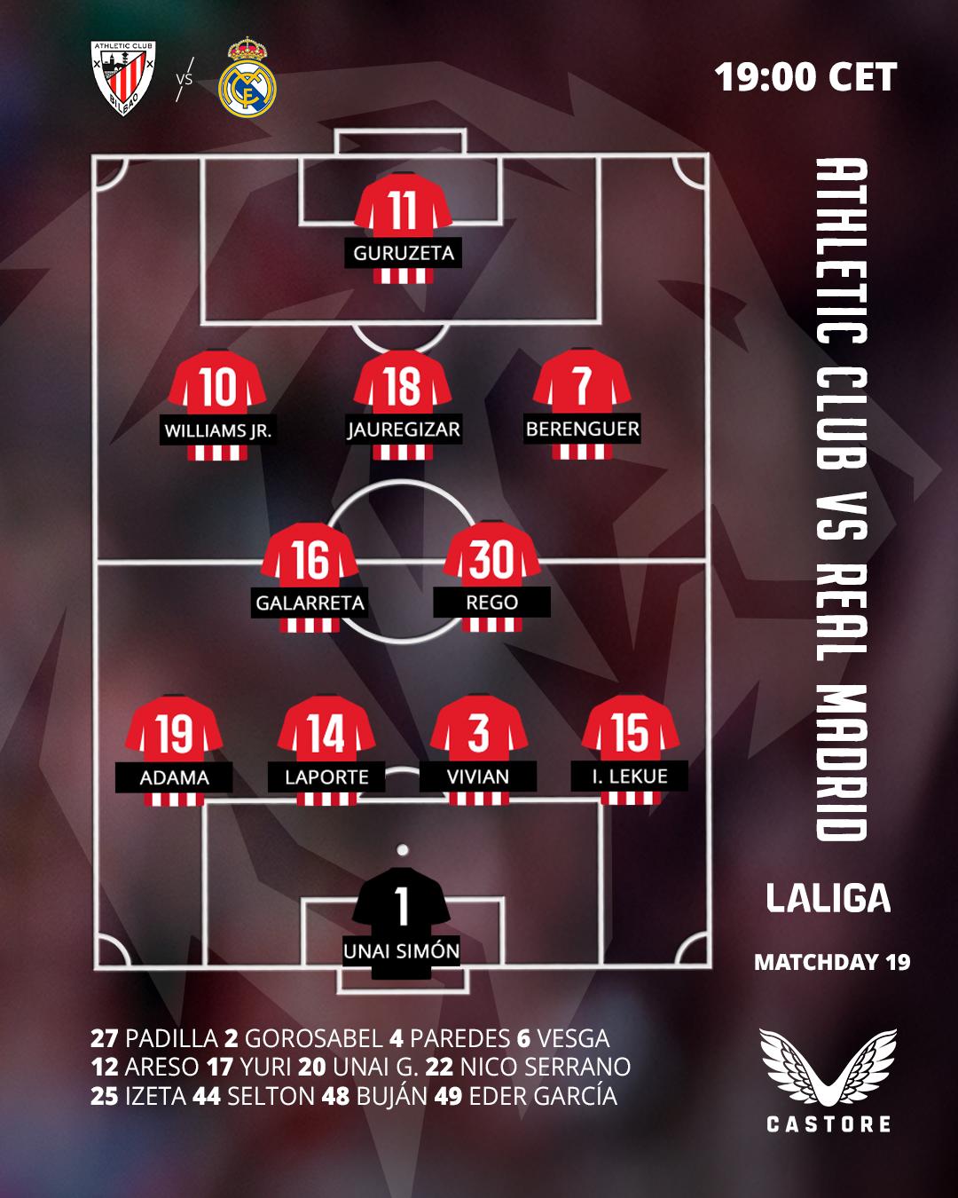 HomeNewsMultimediaStarting XI: Athletic Club vs Real Madrid (LaLiga 2025-26, MD19) Dec 3, 2025 Starting XI: Athletic Club vs Real Madrid (LaLiga 2025-26, MD19)