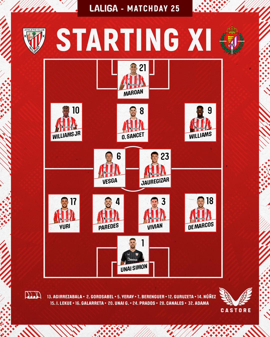 HomeNewsMultimediaStarting XI: Athletic Club vs Real Valladolid (MD25) Feb 23, 2025 Starting XI: Athletic Club vs Real Valladolid (MD25)