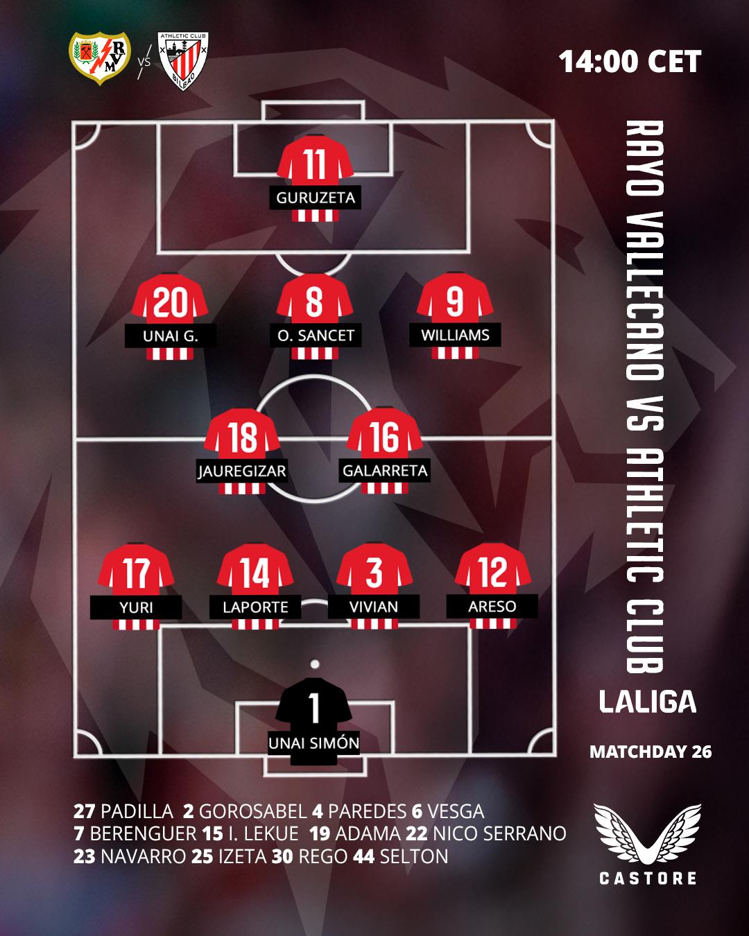 HomeNewsMultimediaStarting XI: Rayo Vallecano vs Athletic Club (LaLiga 2025-26 MD26) Feb 28, 2026 Starting XI: Rayo Vallecano vs Athletic Club (LaLiga 2025-26 MD26)