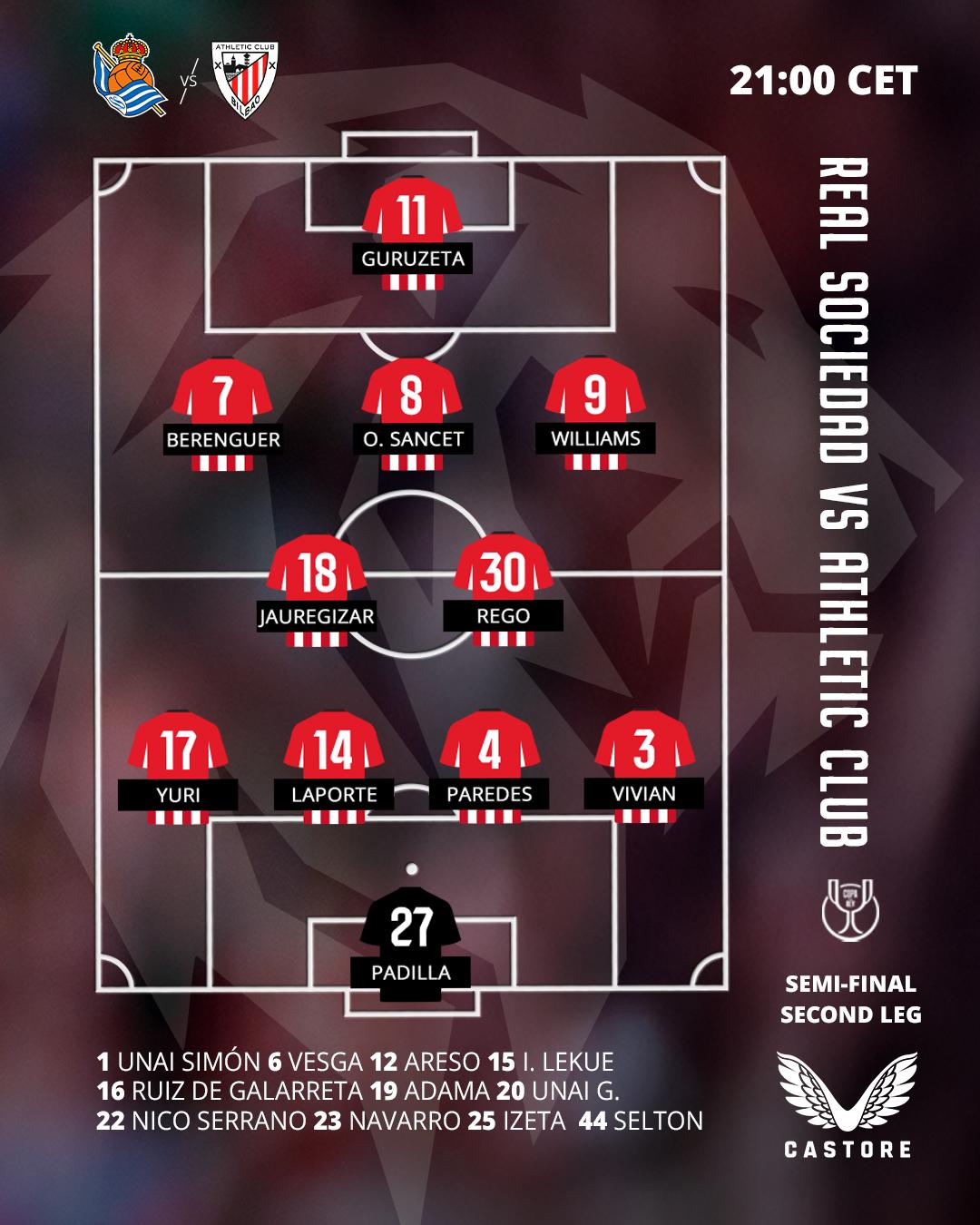 HomeNewsMultimediaStarting XI: Real Sociedad vs Athletic Club (Copa semi-final, 2nd leg) Mar 4, 2026 Starting XI: Real Sociedad vs Athletic Club (Copa semi-final, 2nd leg)