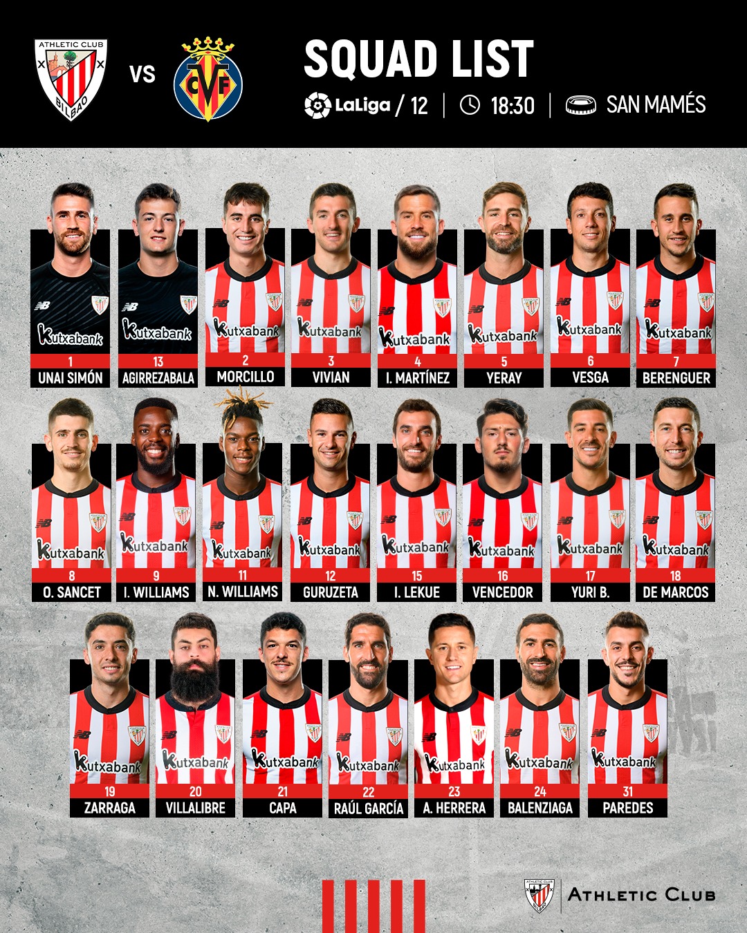 Ernesto Valverde has called these 23 players for the fixture. Iker Muniain and Dani García are out with injuries, while Ander Capa and Asier Villalibre are back in the squad after missing out last time.
