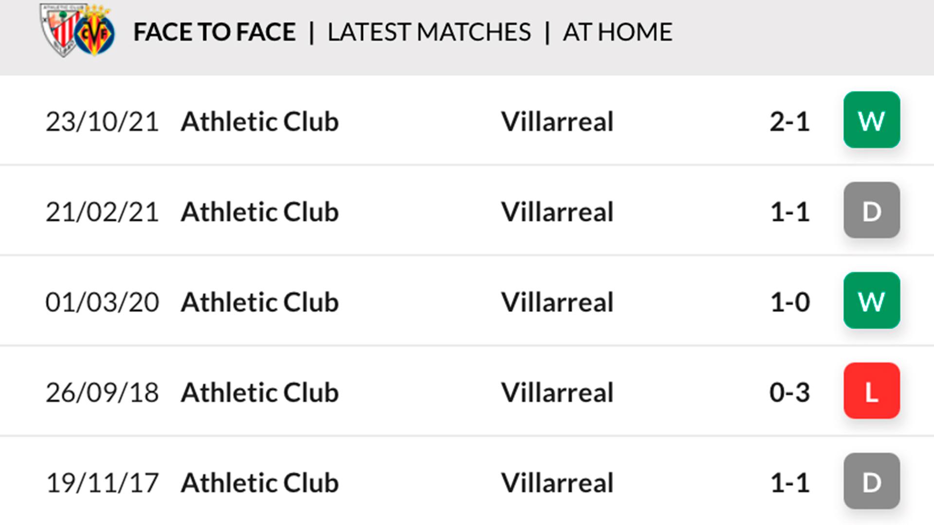 The visitors have only claimed all three points once from their last five visits to Bilbao. Villarreal's last victory at San Mamés came in 2018/19, while Los Leons have won two and drawn the other two.