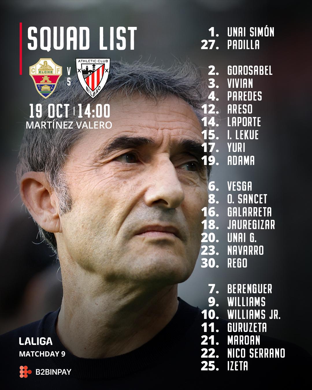 Squad list: Elche CF vs Athletic Club (LaLiga 2025-26 MD9)