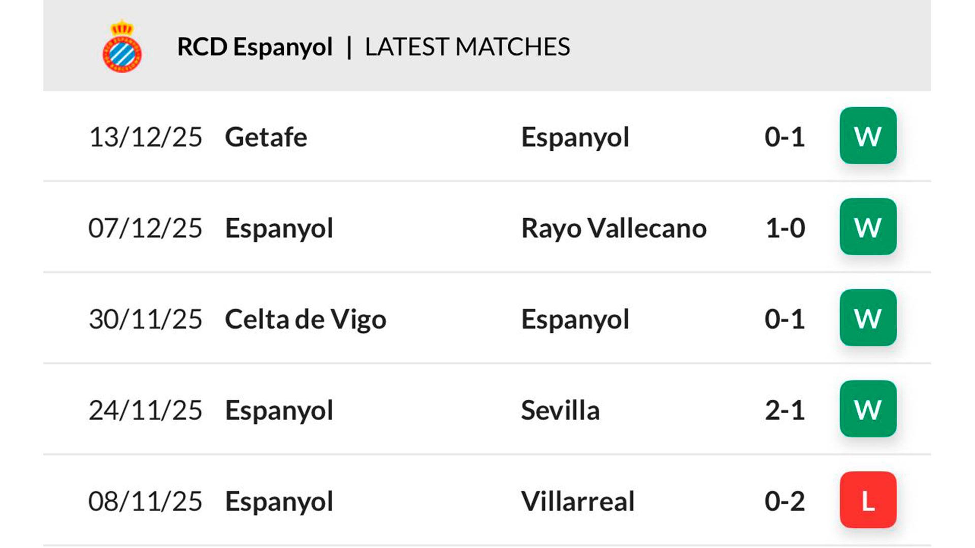 As we head into the Christmas break, Los Pericos are fifth in LaLiga with 30 points from nine wins, three draws and four losses.