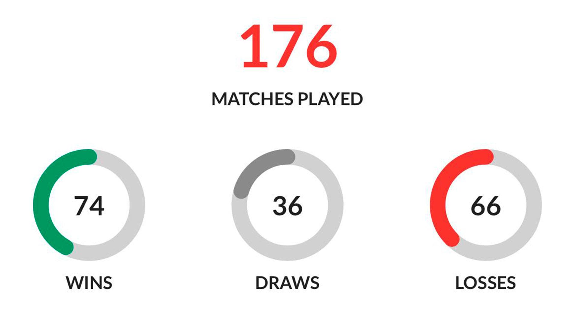 From 176 top-flight fixtures, Athletic have registered 74 wins, 36 draws and 66 defeats.