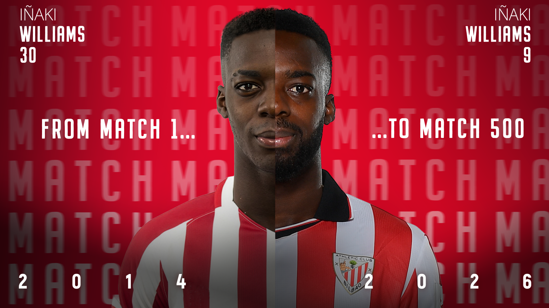Iñaki's official Athletic debut came during the 2014/15 season in a LaLiga fixture against Córdoba CF at San Mamés on December 6. Twelve years later, Iñaki Williams has reached this milestone of 500 appearances, scoring a total of 114 goals.