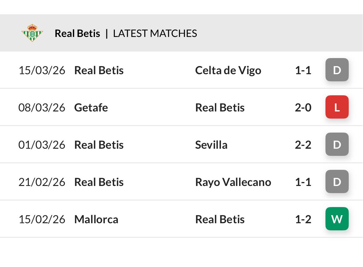 The Andalusians have experienced some mixed results of late, with draws, a win and a loss in their last five fixtures.