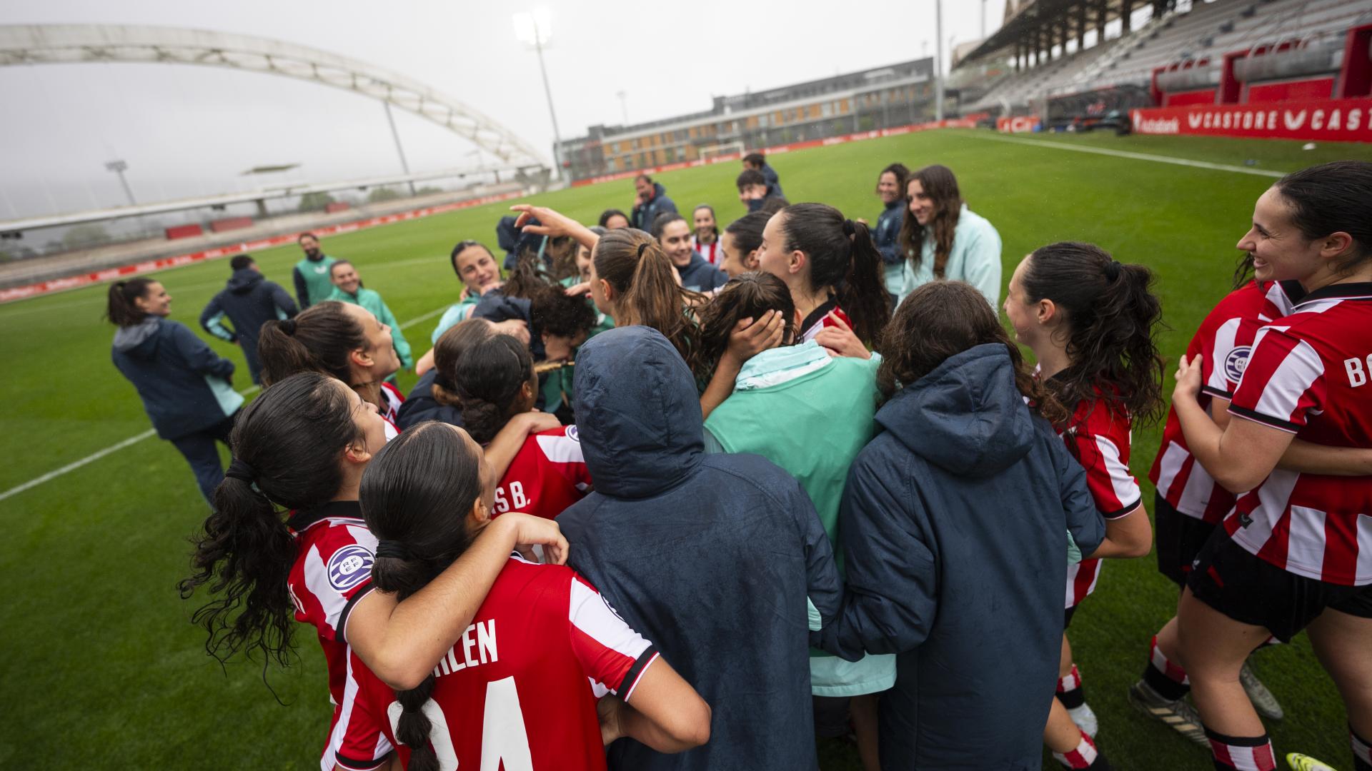 Todavía quedará esperar, ya que el partido de mañana en Zubieta de la Real Sociedad será el que decida si este fin de semana o no el filial femenino logre el ascenso a Primera Federación. De momento, los deberes están hechos, ya que el equipo dirigido por Ander Ojanguren se impuso, remontada incluida, por 2-1 al Racing de Santander en el campo 2 de Lezama.