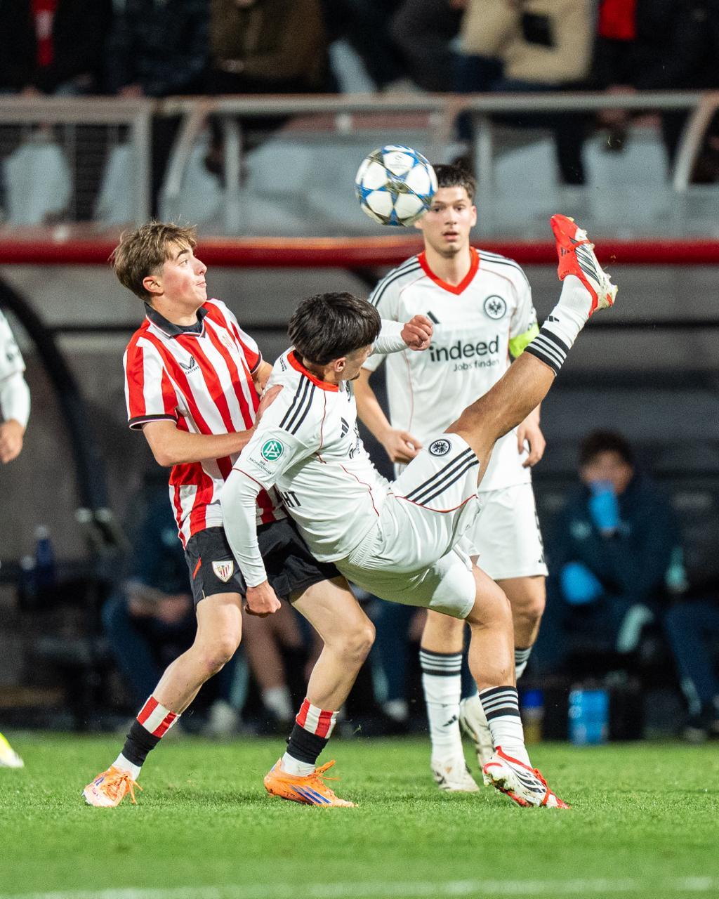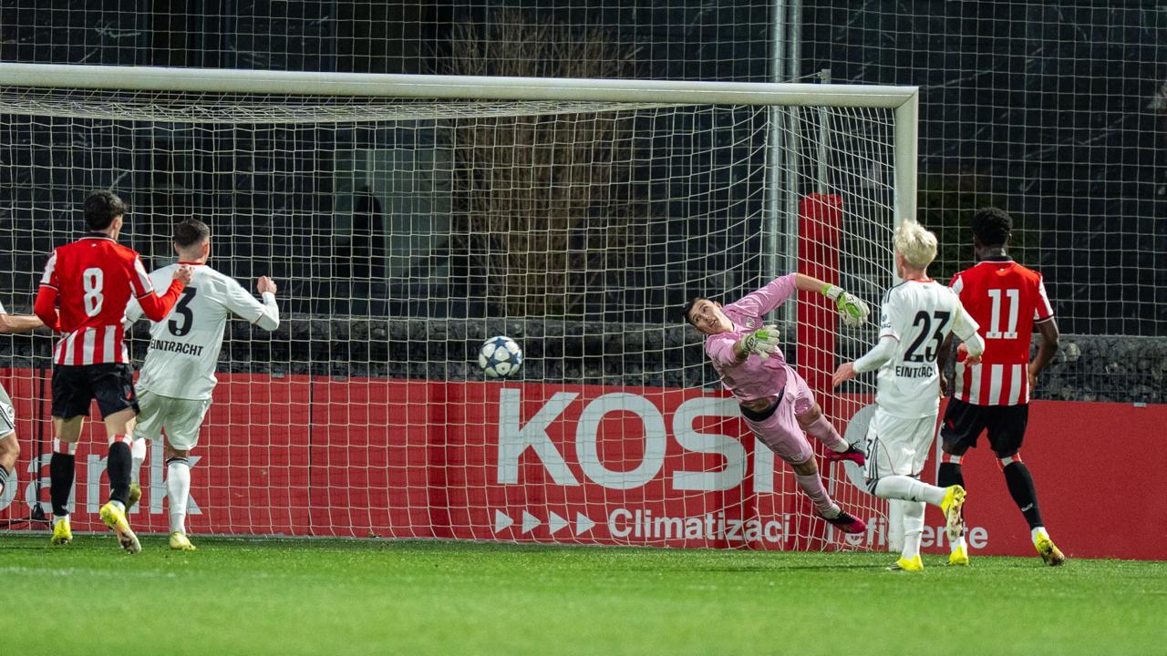 El Athletic Club ha dicho adiós a la Youth League de la manera más dolorosa, en la tanda de penaltis. Los bilbaínos se dejaron igualar dos veces un partido que creyeron tener en la mano y fueron eliminados por un Eintracht Frankfurt con problemas defensivos, pero peligro arriba.