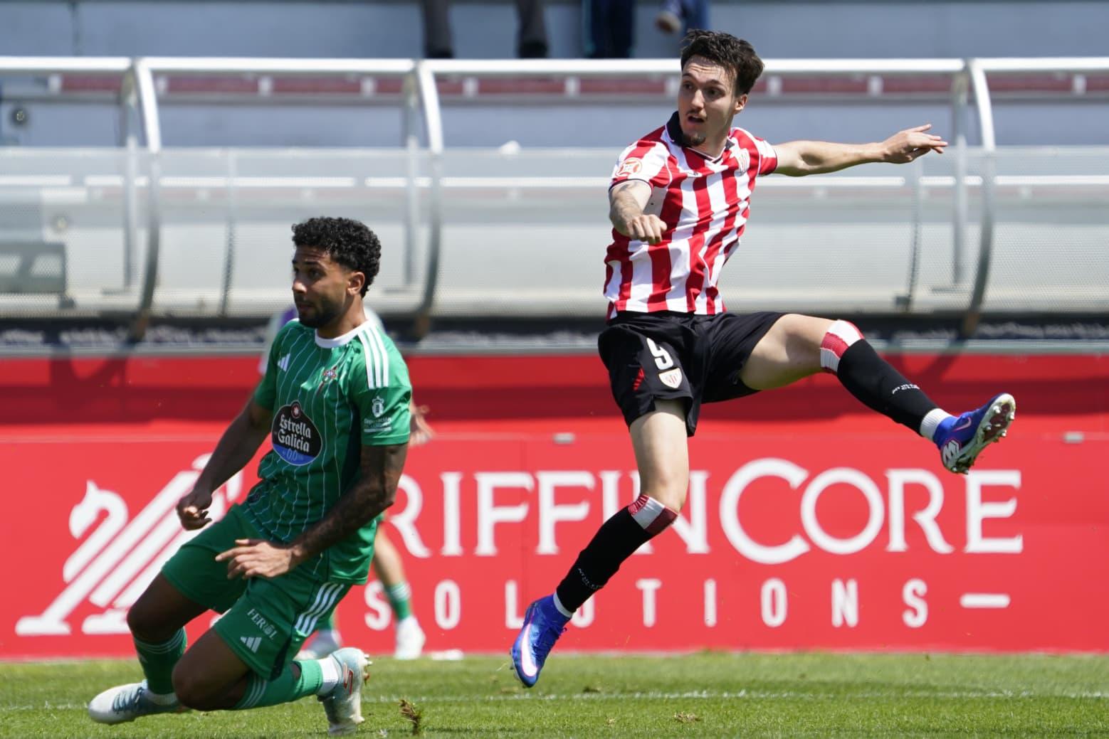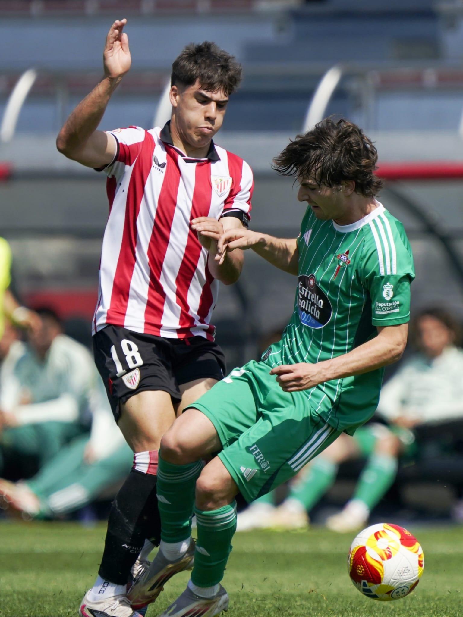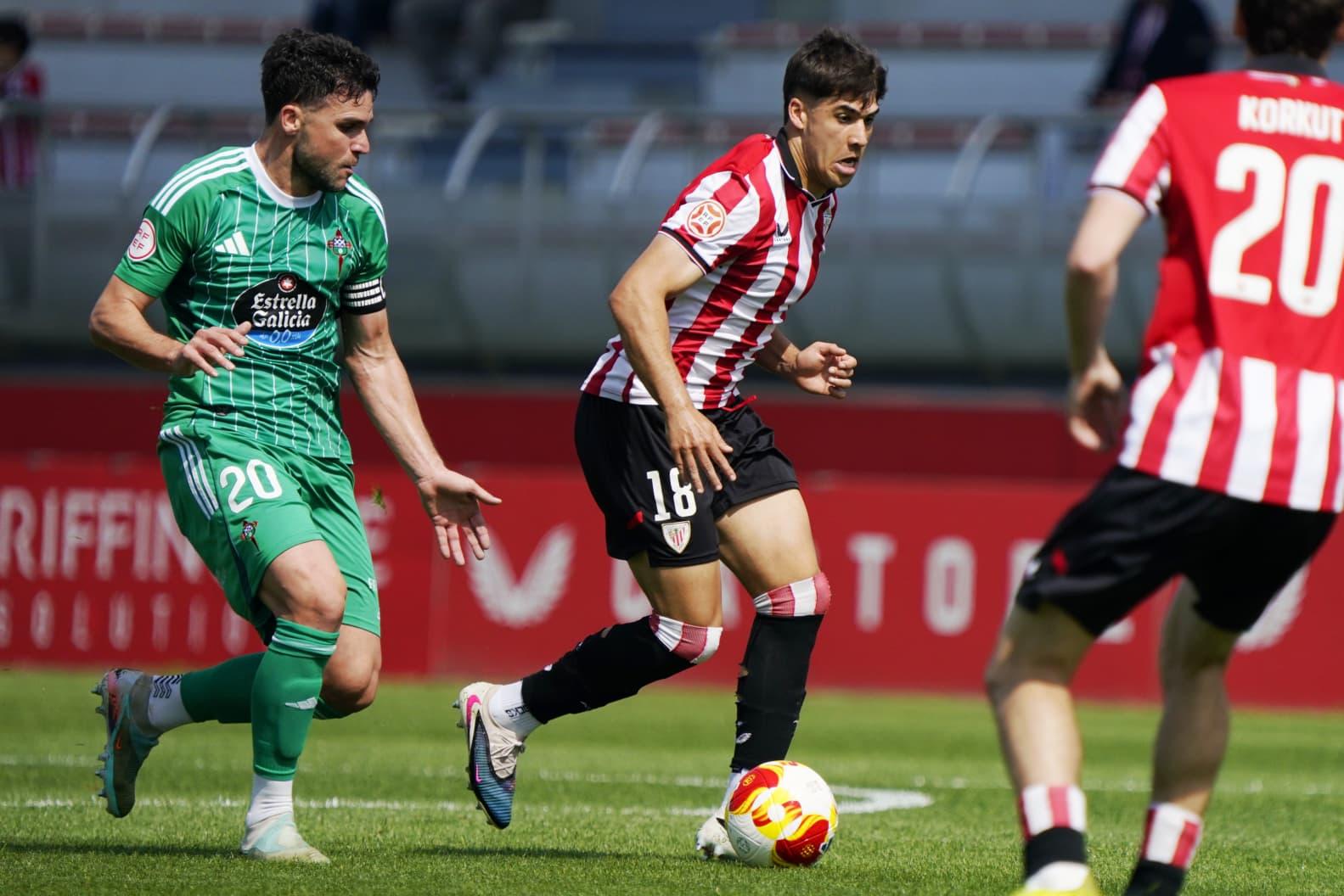 Domingo soleado en Lezama. El partido comenzó con un gol tempranero de los gallegos. En el minuto 6 de partido, Chema remató de cabeza un balón medido desde el córner para adelantar a los suyos. No obstante, el Bilbao Athletic no se quedó atrás y salió en busca del empate. Eder García probó suerte con un disparo lejano ajustado al palo que detuvo Lucas. Esa sería la ocasión más clara de toda la primera parte para los rojiblancos.