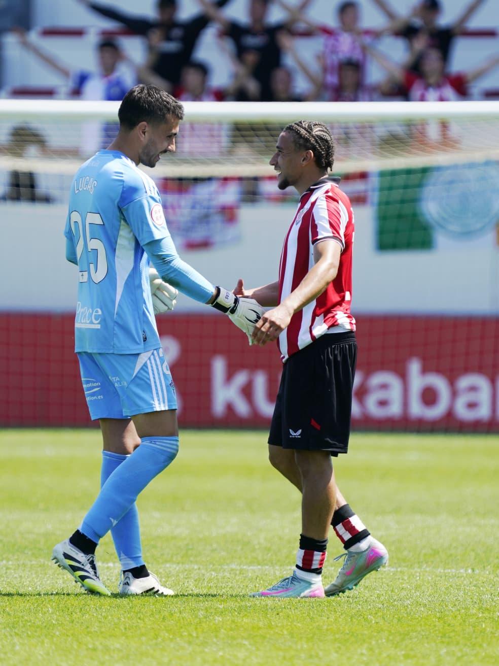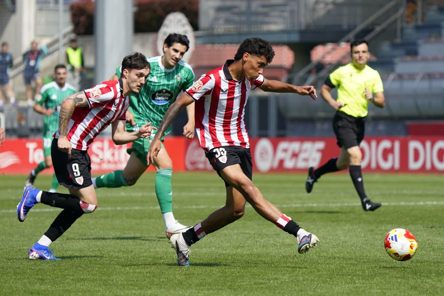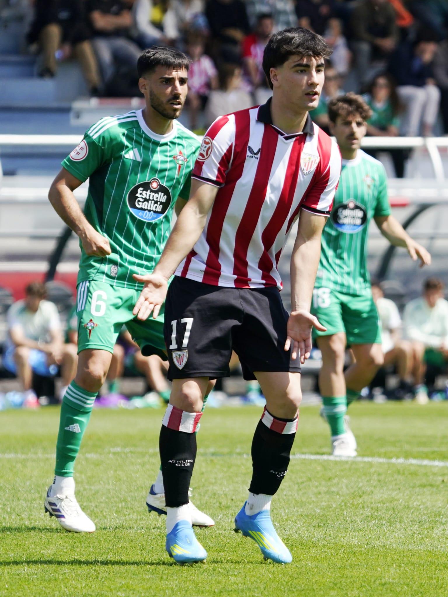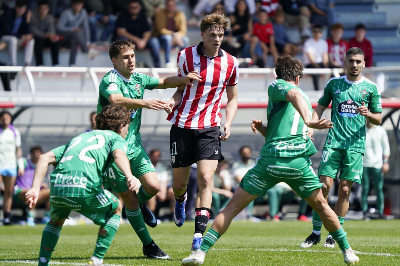 Domingo soleado en Lezama. El partido comenzó con un gol tempranero de los gallegos. En el minuto 6 de partido, Chema remató de cabeza un balón medido desde el córner para adelantar a los suyos. No obstante, el Bilbao Athletic no se quedó atrás y salió en busca del empate. Eder García probó suerte con un disparo lejano ajustado al palo que detuvo Lucas. Esa sería la ocasión más clara de toda la primera parte para los rojiblancos.