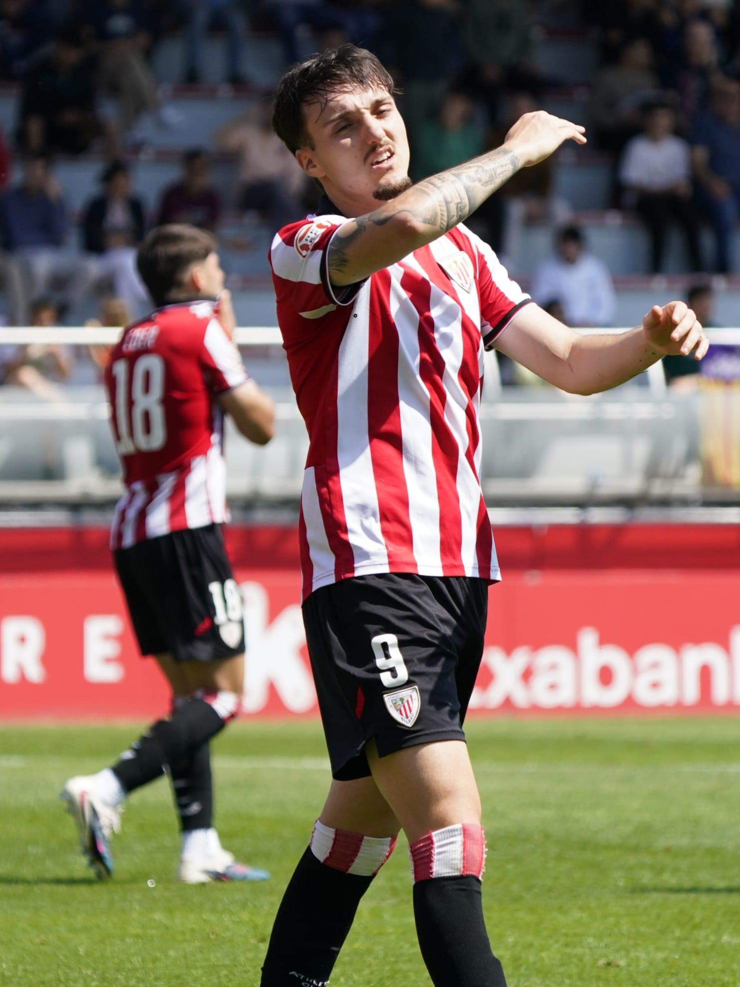 En la segunda mitad los cambios introducidos por Jokin Aranbarri dieron un aire fresco al equipo. Mejor los locales, en el 60 de partido Ibai Sanz, el cachorro más peligroso en el segundo tiempo, remató a placer un centro desde la derecha de Adrián para hacer gol, aunque fue anulado por el colegiado por un escaso fuera de juego. Beñat García, recién incorporado al campo, dispuso de una buena oportunidad para igualar la contienda, pero su disparo fue inofensivo para el guardameta rival. También la tuvo Johaneko, pero sin fortuna una vez más. No se movió el marcador, consumando la derrota rojiblanca. Siguiente reto del Bilbao Athletic, el próximo domingo, 26 de abril, a las 18:15 horas.