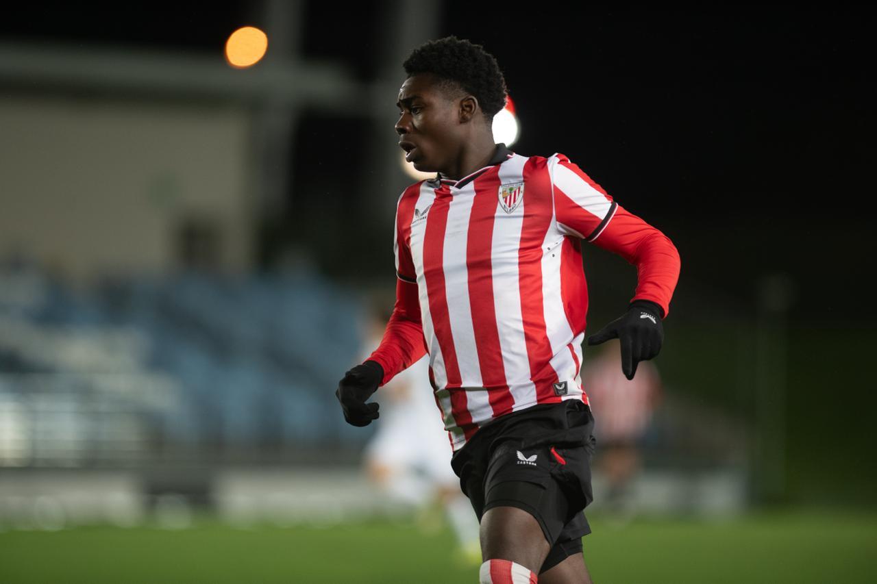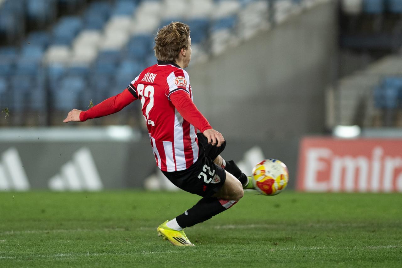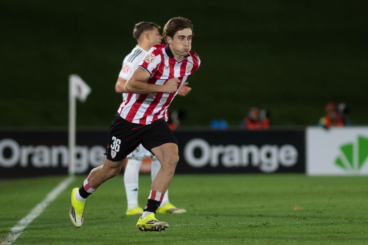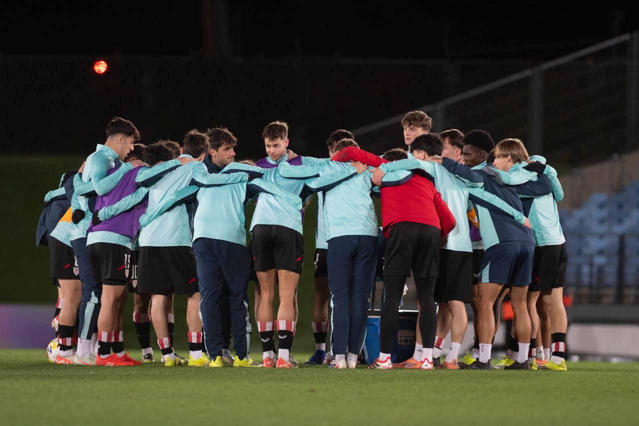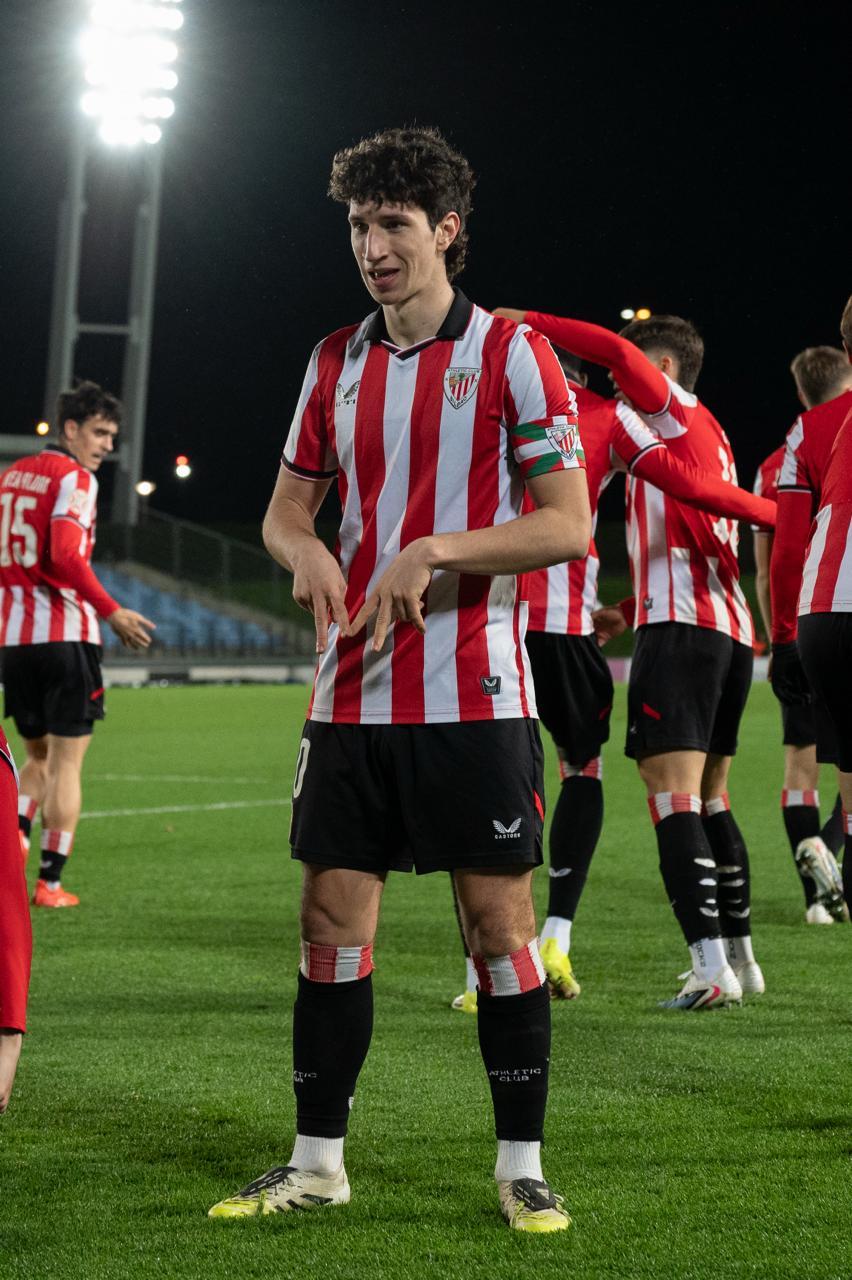 El Bilbao Athletic salió al césped del Alfredo Di Stéfano con un ritmo vertiginoso y fruto de la presión inicial, el encuentro comenzó de cara para los de Jokin Aranbarri. Eder García mandó un baló en profundidad para Gift, que cedió perfectamente un balón a la media luna donde apareció Ibon Sánchez para mandar un zurdazo a las redes madridistas. No obstante, en la primera jugada peligrosa para los locales, Pol Fortuny igualó la contienda después de recoger un rechace de una parada de Mikel Santos. El infortunio se cebó con el Bilbao Athletic, ya que tuvo que realizar un doble cambio durante la primera parte debido a las molestias de Duñabeitia e Ibon Sánchez. El cambio de este último dio pie para que Efe Korkut gozara de sus primeros minutos con la camiseta rojiblanca. Huestamendia tuvo una ocasión muy clara para hacer el segundo, pero Joan Martín sacó el balón sobre la línea de gol.