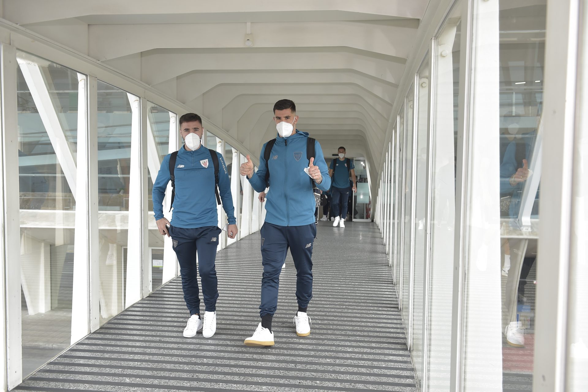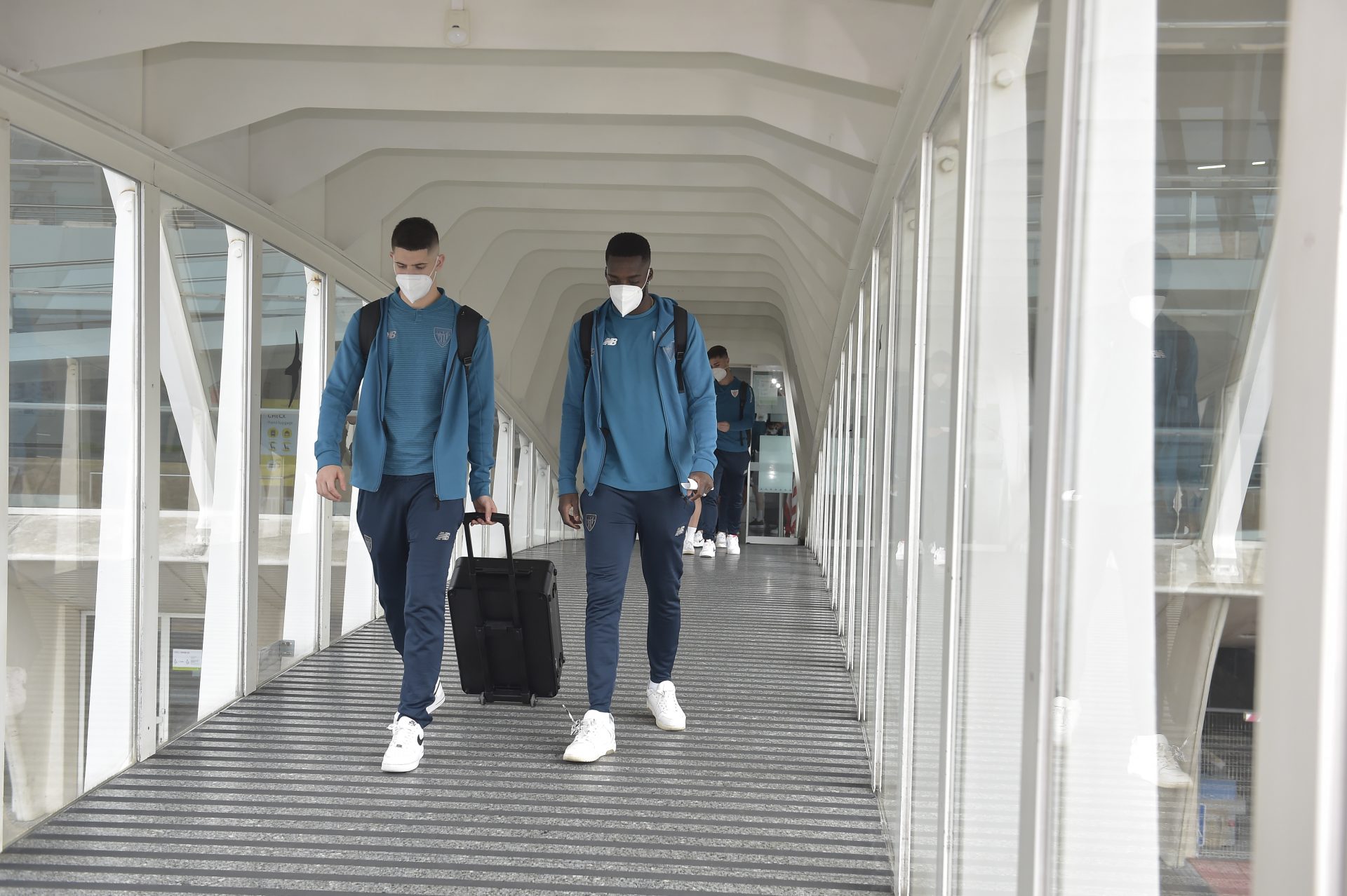 Athletic Cluben taldea, osorik, Lezamatik abiatu da Sevillara bidean, larunbatean 21:30ean Kopako jokatzeko Realaren aurka. Espedizio zuri-gorria 10:45ean irten zen instalazioetatik. Andaluziako hiriburura hegaldia hartu du jada, hotelera iristeko asmoz.