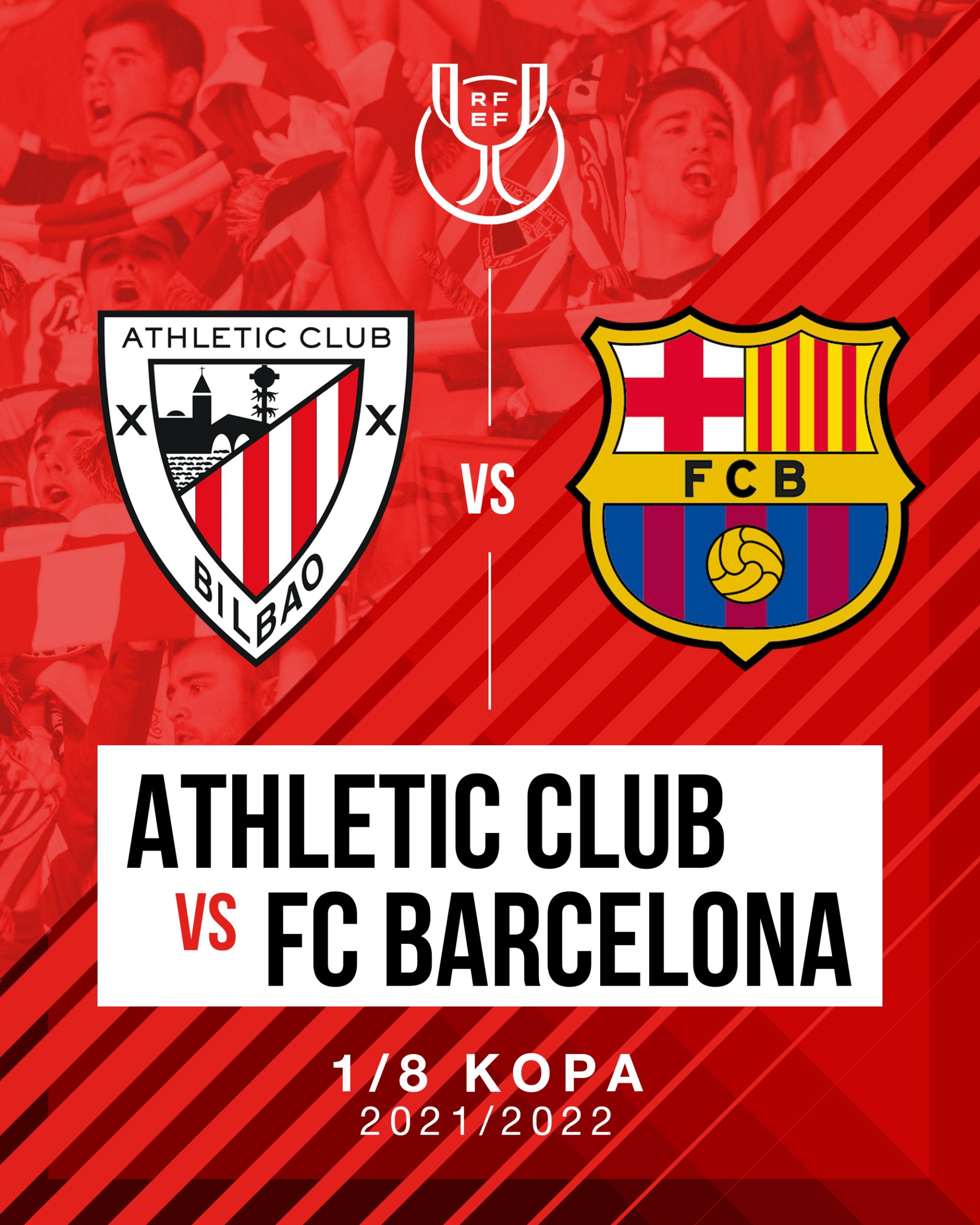 Athletic Clubek Bartzelona izango du aurkari 2021-22 Kopako final-zortzirenetan. Kanporaketa, partida bakarrera San Mamesen, urtarrilaren 20an, osteguna, jokatuko da, 21:30ean.