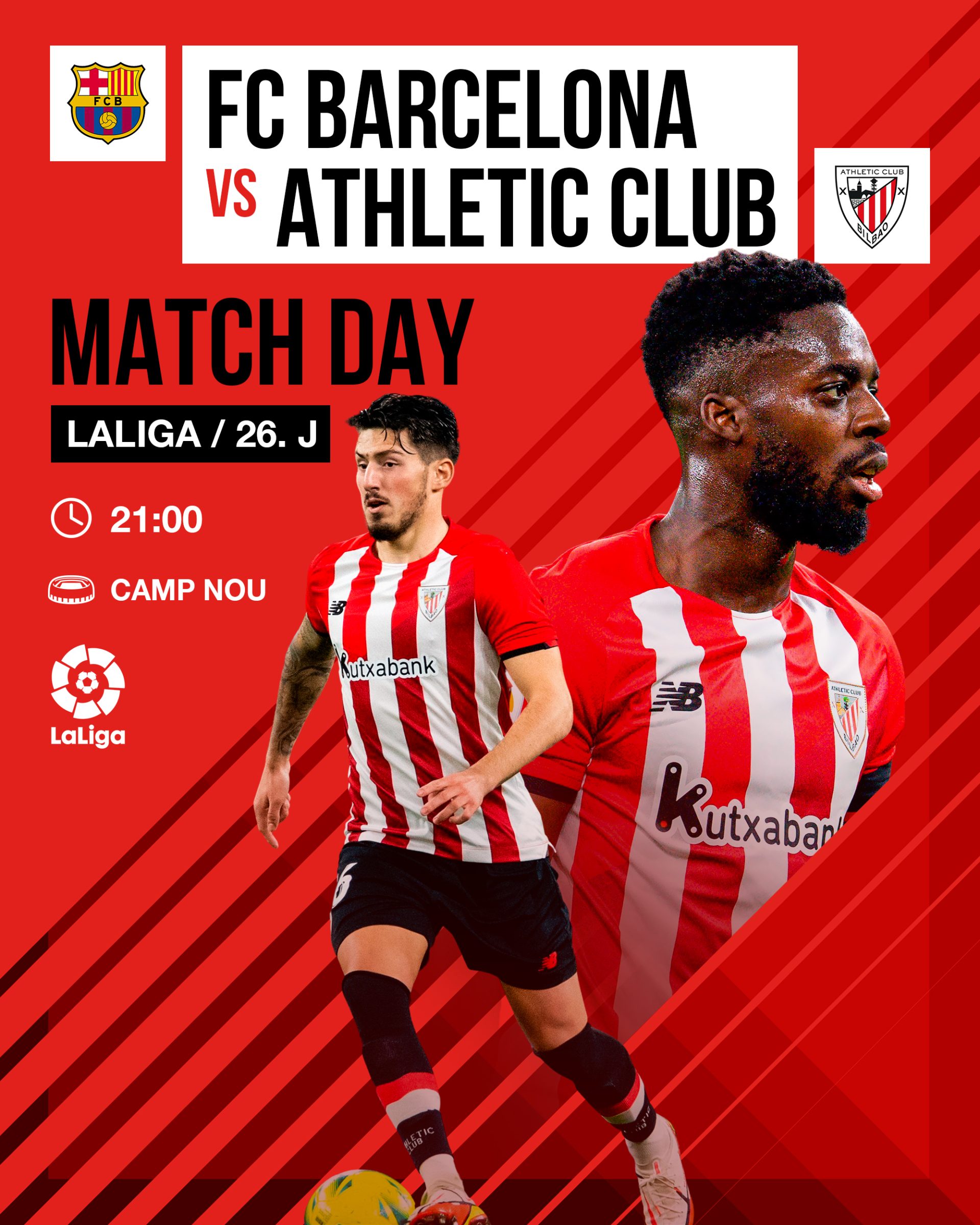 Realaren aurkako derbian garaipen handia lortu ondoren, Athletic Clubek FC Barcelonari egingo dio bisita, Europako txapelketetara sailkatzeko lehian jarraitzeko asmoarekin. Inoiz mailaz jaitsi ez diren bi talderen arteko lehia izango da. Lehoiak zortzigarren postuan daude, 37 punturekin, gaurko aurkariarengandik bost puntutara, eta talde blaugranak LaLigako laugarren postua eskuratu du, 42 punturekin. Gaurko norgehiagoka garrantzitsua da aurten talde zuri-gorria erakusten ari den sentsazio onei jarraipena emateko, sailkapenean tartea murrizteko eta datorren astean Mestallan jokatuko den kopako finalerdiaren hitzordura ahalik eta ondoen iristeko. Bertan, Valencia CF izango du aurkari finalaurrekoaren itzulikoan.