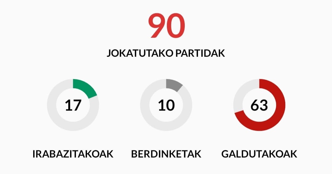 Bi taldeek Bartzelonan jokatutako azken bost neurketak erreparatzen baditugu, bilbotarrek berdinketa bat eta lau porrot lortu dituzte.