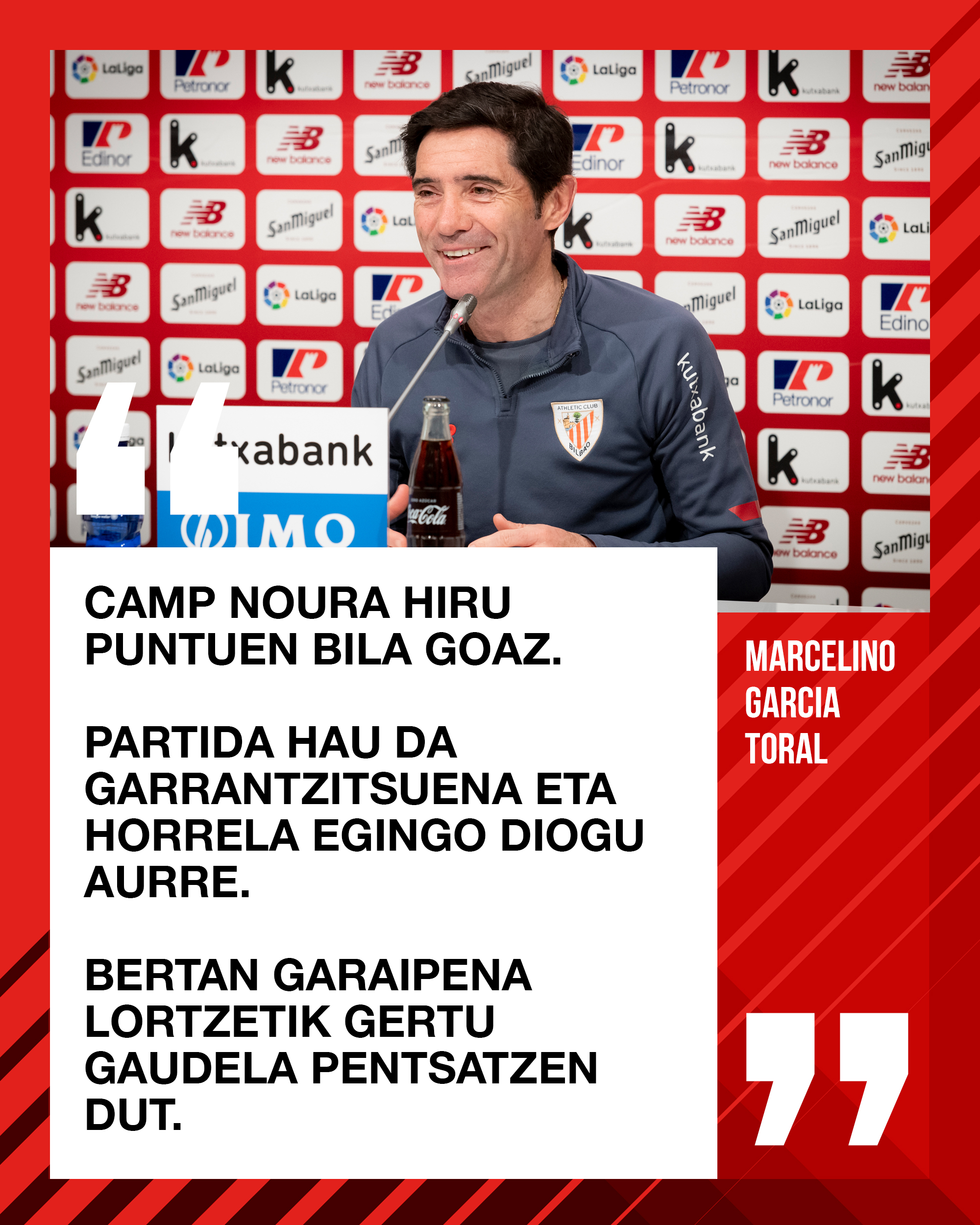 Marcelino Garcia Toral Athletic Clubeko entrenatzaileak gaur gauean Barçaren aurka jokatu aurretik komunikabideen aurrean egindako agerraldia ikus dezakezu hemen.