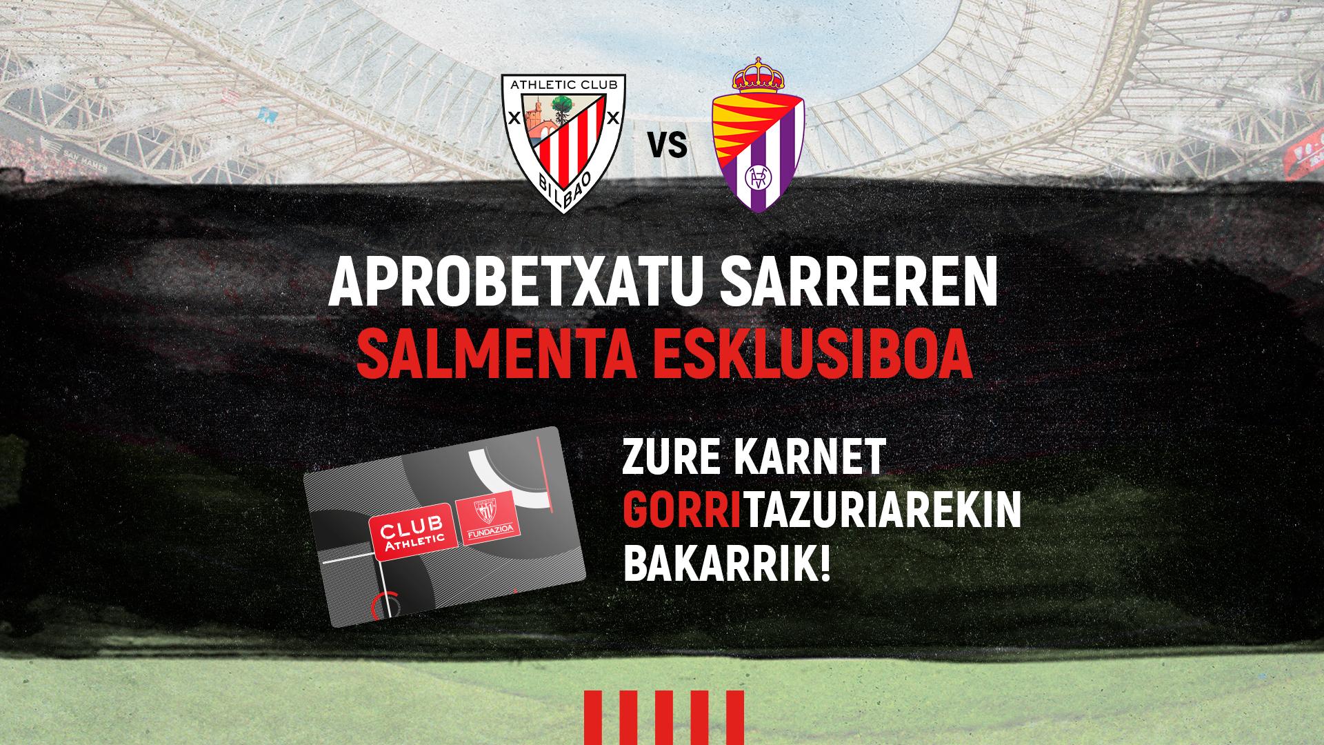 Club Athleticeko kideek dagoeneko eros ditzakete, lehentasunez, Athletic Clubek 2022/23 LaLigako hamalaugarren jardunaldian, azaroaren 8an, asteartea, 20:00etan, San Mamesen, Athletic Clubek eta Real Valladolidek jokatuko duten partidarako sarrerak, Athletic Cluben Sarrera Webaren bitartez. Salmenta esklusiboa urriaren 29an (larunbata) eta 30ean (igandea) 23:59ak arte egongo da aktibatuta.