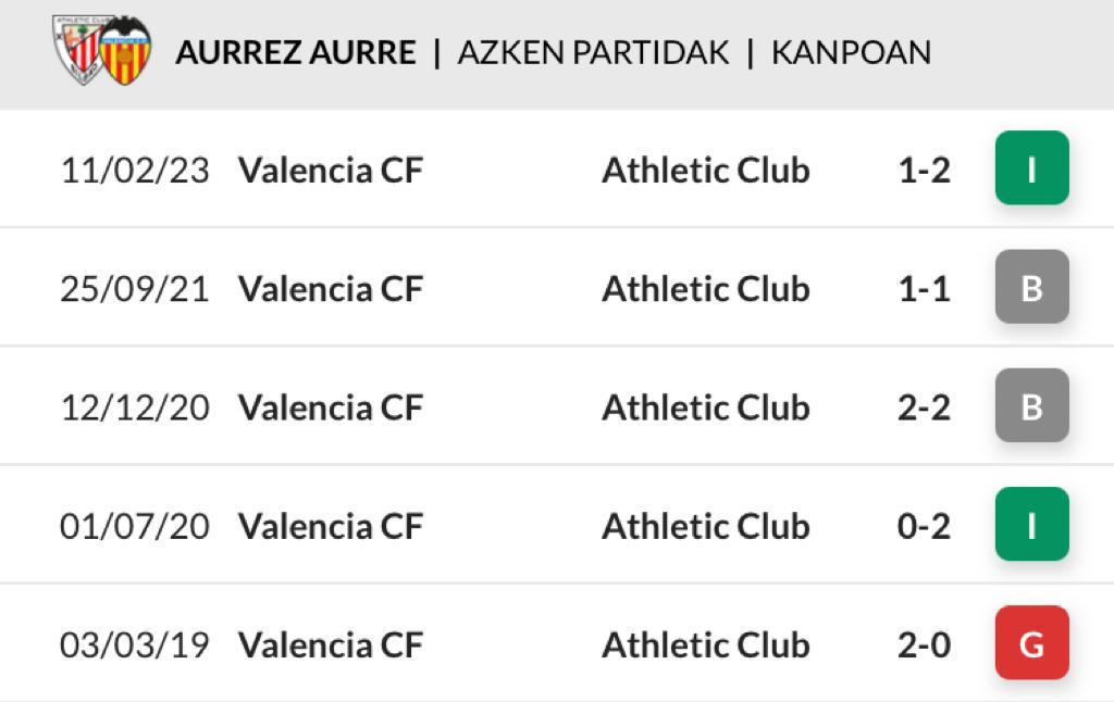1931/32 denboraldian LaLigan lehen norgehiagoka jokatu zutenetik, Valencia CF-k eta Athleticek 177 partida jokatu dituzte guztira, 64 garaipen, 46 berdinketa eta 67 porroteko balantzearekin.