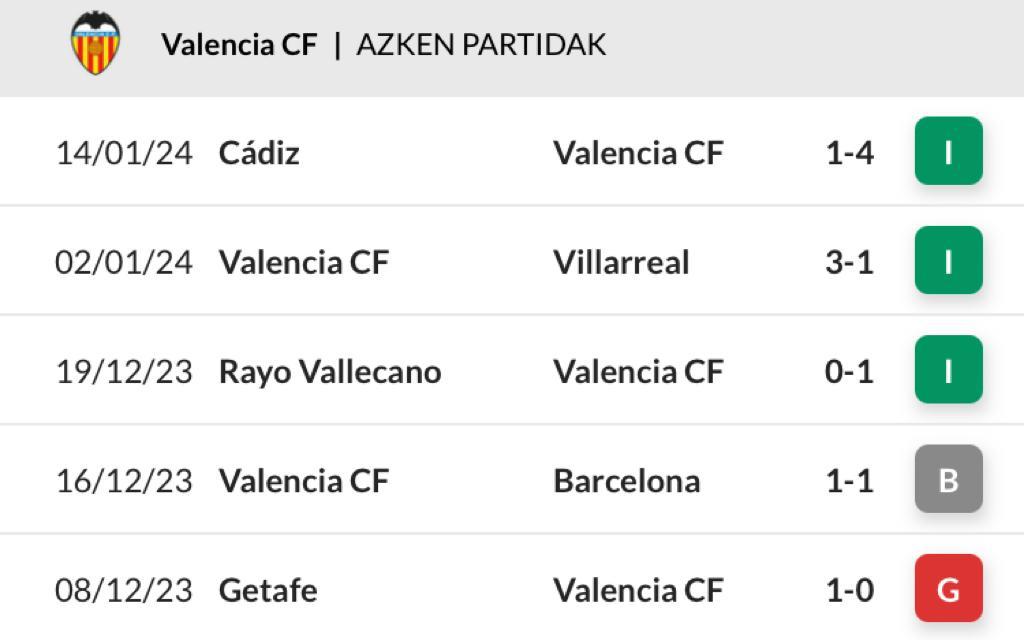 Gaur egun, Ruben Barajak zuzentzen duen taldea, 29 punturekin, sailkapeneko zortzigarren postuan dago kokatuta. Real Betis eta Realarengandik bi eta hiru puntura dago, datorren urtean Europako postu bat betetzeko lehian dauden bi klubengandik oso hurbil. Oso jokalari gazteekin, Valencia CF ikasturte bikaina egiten ari da, eta LaLigako azken bost partidetan porrot bakarra jaso du (Getafe CF-ren aurka). Ordea, hiru aldiz lortu ditu hiru puntuak (Rayo Vallecano, Vilarreal CF eta Cadiz CF-ren aurka) eta behin berdindu du (FC Barcelonaren aurka).
