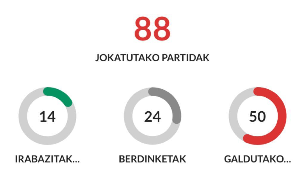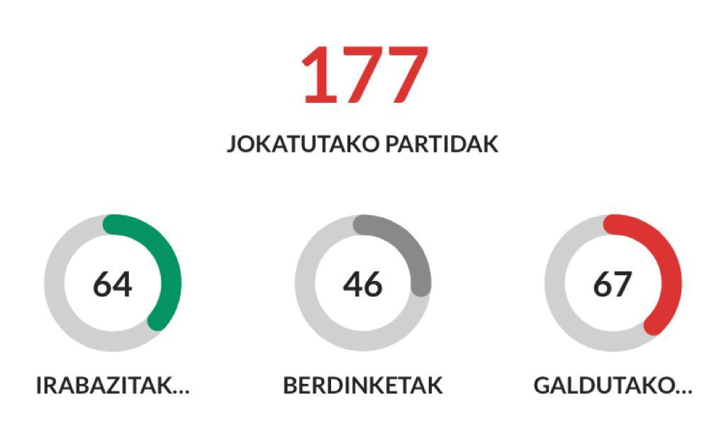 Mestallan jokatutako partidei dagokienez, Athleticek 14 garaipen lortu ditu, 24 berdindu eta 50 aldiz galdu du.