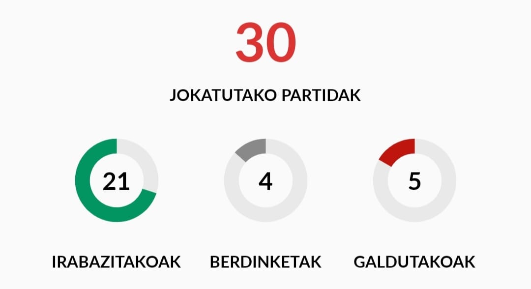 Jaitsiera postuetatik lau puntutara, Javier Aguirrek aulkitik zuzentzen duen taldeak ez du LaLigan irabazten abenduaren 21etik, Osasuna etxean mendean hartu zuenetik. Gainera, Mallorca Kopako finalerdietan Realaren arituko da