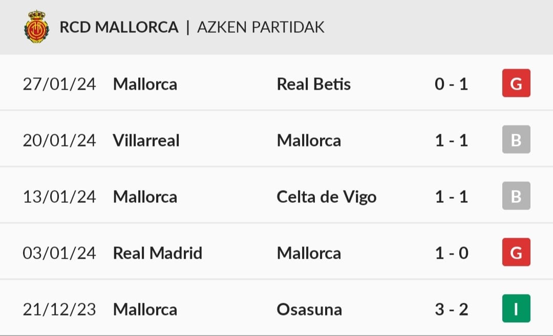 RCD Mallorcaren aurkako estatistika guztiak kontsultatu.