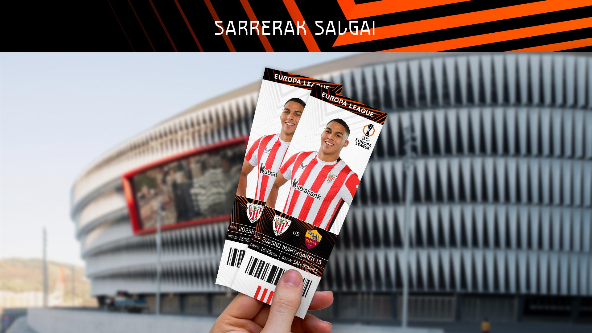 Athletic Clubek eta AS Roma taldeek San Mamesen jokatuko duten Europa Leagueko 2024/25 denboraldiko final-zortzirnetako itzulerako partidarako, martxoaren 13ean, ostegunean, 18:45etan, sarrerak erosi nahi dituzten guztiek, martxoaren 3tik aurrera erosi ahal izango dituzte Athletic Cluben sarreren webgunearen bitartez*.