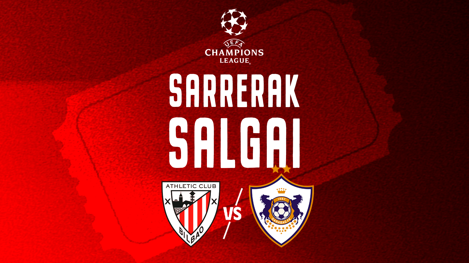 Athletic Club eta Qarabag FK taldeek San Mamesen jokatuko duten 2025/26 Champions Leagueko Fase Ligako hirugarren jardunaldirako (urriaren 22an, asteazkenean, 18:45ean) sarrerak erosi nahi dituzten guztiek, irailaren 22tik aurrera erosi ahal izango dituzte Athletic Cluben sarreren webgunearen bitartez*.