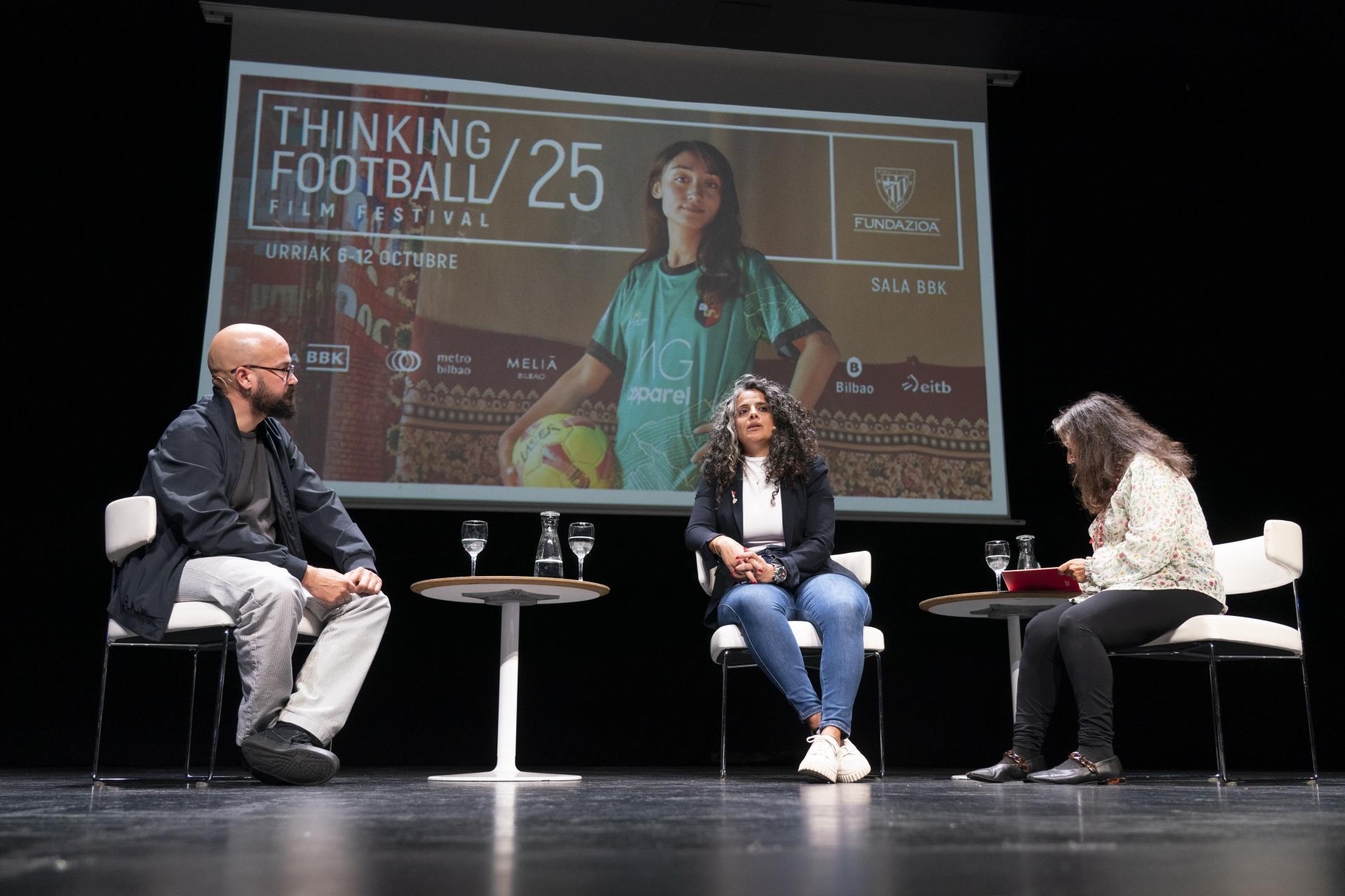 Atzo, Thinking Football Film Festivalak egitarau anitza eskaini zuen, historia, animazioa eta ahalduntze-istorioak uztartzen zituzten saioekin. Programazioan ‘One, Two, Three, Viva Algeria!’ dokumentala nabarmendu zen; filmak FLN taldearen garaitik (Aljeriako independentzia-gerran) 2010eko Munduko Txapelketara arteko ibilbidea kontatzen du, lelo ikoniko hori gizarte-aldaketaren sinbolo bihurtu zen arte. Gainera, hiru film labur proiektatu ziren, eta saioaren amaieran Honey Thaljieh futbolari eta aktibista palestinarraren parte-hartze berezia izan zen.