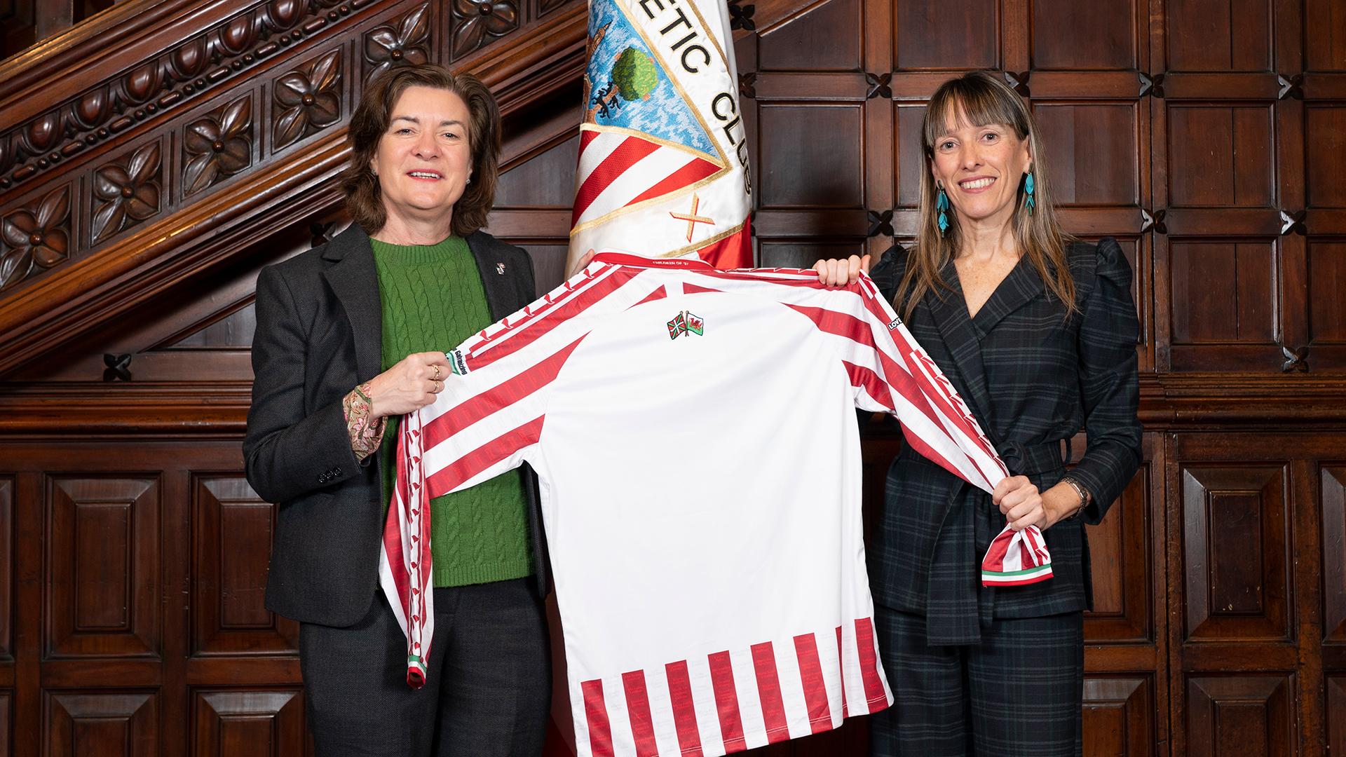 Athletic Clubeko ordezkaritza instituzionalak harrera egin dio bertako ordezkaritzari, Nerea Ortiz presidenteordea eta Jon Berasategi zuzendari nagusia buru direla, izaera instituzionaleko ekitaldi batean. Ekitaldi horretan, Ibaigane Jauregia zeharkatu eta batzar-aretoan bildu ziren. Bisitaldian zehar, Gales eta Euskal Herriaren arteko harreman historikoa aztertu zen, baita kirolak eta kulturak herrien arteko oroimen eta lotura elementu gisa duten papera ere.