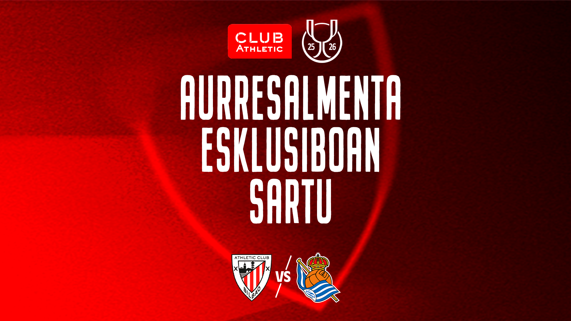 Otsailaren 11n, asteazkena, 21:00etan San Mamesen jokatuko den Athletic Club-Real Sociedad neurketarako, Kopako finalerdietako joanekorako, sarrerak erosteko interesa duten Club Athleticeko kideek dagoeneko, lehentasunarekin, Athletic Cluben webgunearen bitartez eros ditzakete. Salmenta esklusiboa gaur bertan, larunbatean, 16:00etan, hasiko da.