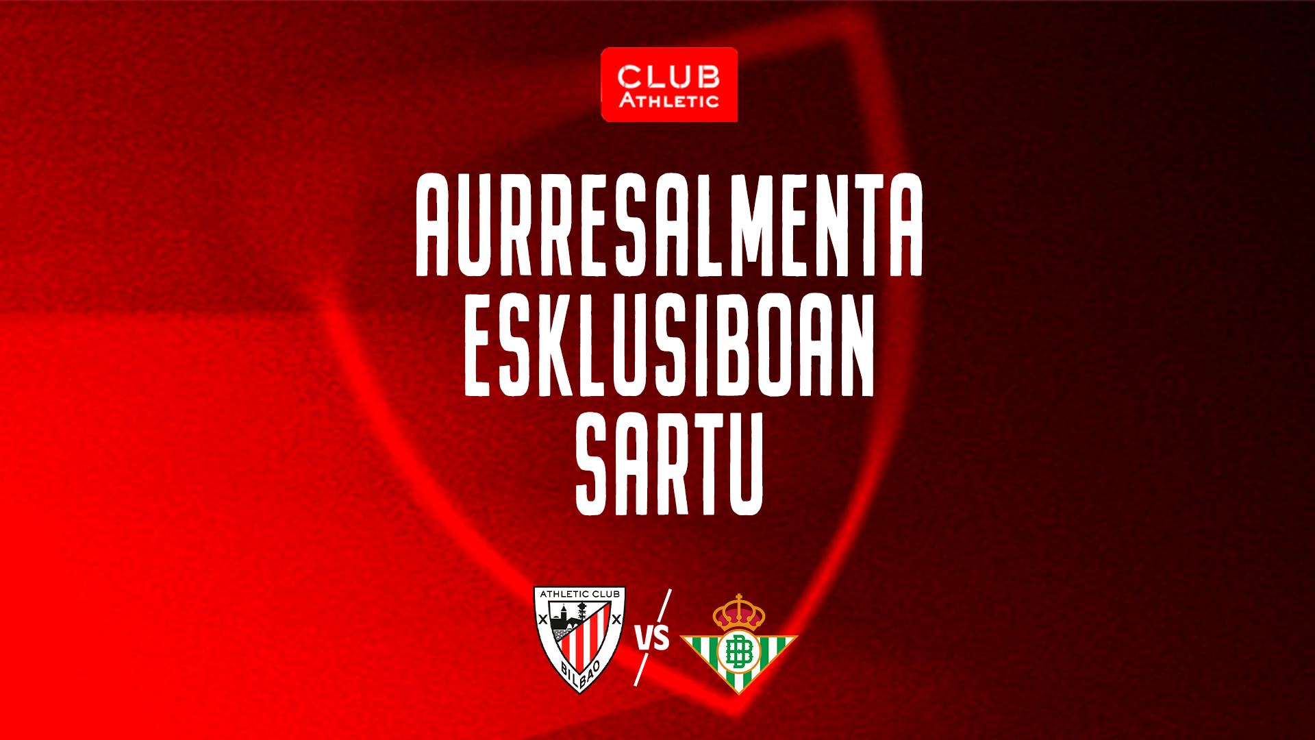 Martxoaren 22an, igandean, 18:30ean San Mamesen jokatuko den Athletic Club-Real Betis neurketarako, LaLigako 29. jardunaldiari dagokion partidarako, sarrerak erosteko interesa duten Club Athleticeko kideek dagoeneko, lehentasunarekin, Athletic Cluben webgunearen bitartez eros ditzakete. Salmenta esklusiboa astelehenean, martxoaren 2an, 10:30ean, amaituko da.