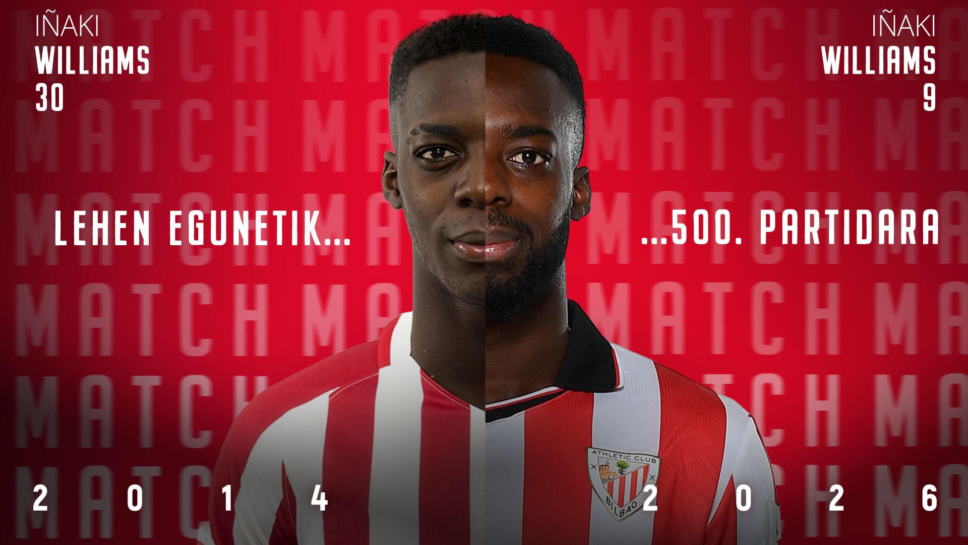 Iñaki Williamsek 500 partida ofizial jokatu ditu Athleticekin Montilivin, Girona FC taldearen aurka, 2025/26 denboraldiko LaLigako 28. jardunaldian parte hartu eta gero. 31 urterekin, aurrelari zuri-gorria Klubarekin 500 partida ofizial edo gehiago jokatu dituzten beste zazpi jokalariko taldera batu da: Iribar, (614), De Marcos (573), Muniain (560), Rojo I (541), Etxeberria (514), Iraola (510) eta Susaeta (507).
