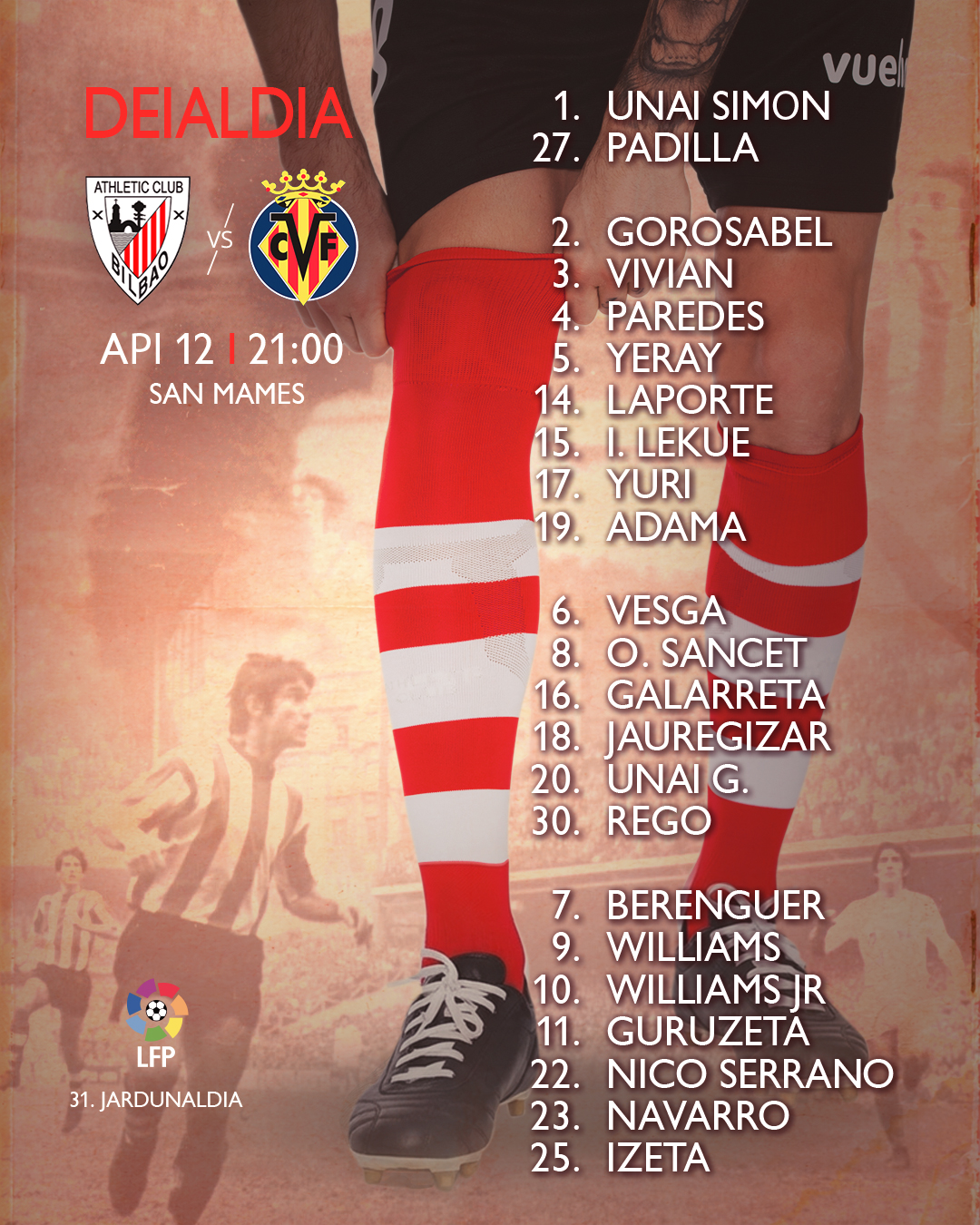 Ernesto Valverde Athletic Clubeko entrenatzaileak 23 jokalari deitu ditu Villarreal CF taldearen aurka jokatzeko 2025/26 LaLiga EA Sportsen 31. jardunaldian. Neurketa apirilaren 12an, igandean, jokatuko da, 21:00etatik aurrera, San Mamesen.