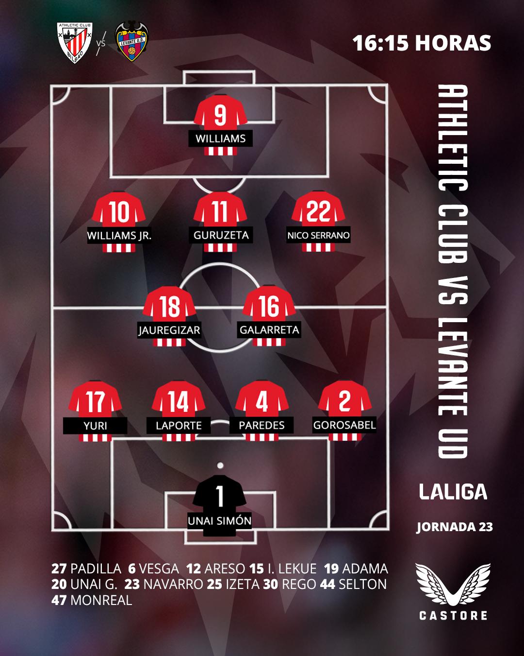 INICIOactualidadMultimediaAlineación: Athletic Club-Levante UD (LaLiga 2025-26, J23) 8 feb 2026 Alineación: Athletic Club-Levante UD (LaLiga 2025-26, J23)