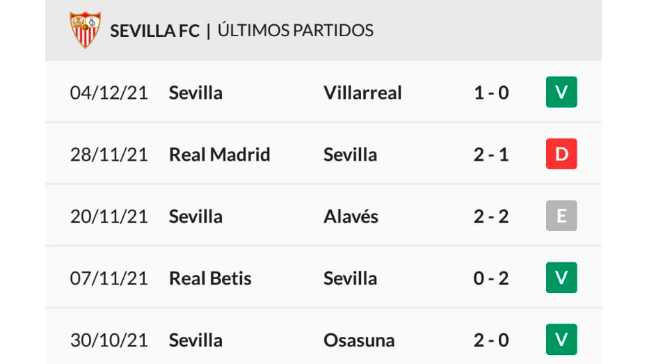 Los hispalenses no atraviesan su mejor momento, tras caer eliminados de la Champions League. En LaLiga, en sus últimos cinco choques, vencieron a Villarreal, Betis y Osasuna; empataron frente al Alavés y cayeron en el Santiago Bernabéu, ante el Real Madrid.
