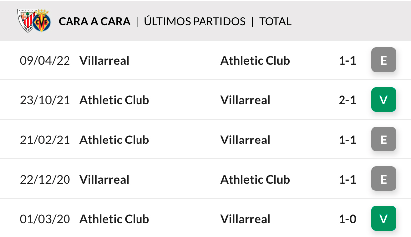 Respecto a los últimos cinco duelos entre ambos equipos, los visitantes no han podido pasar del empate. El Athletic se ha impuesto en dos de los últimos cinco choques y han empatado los otros tres.