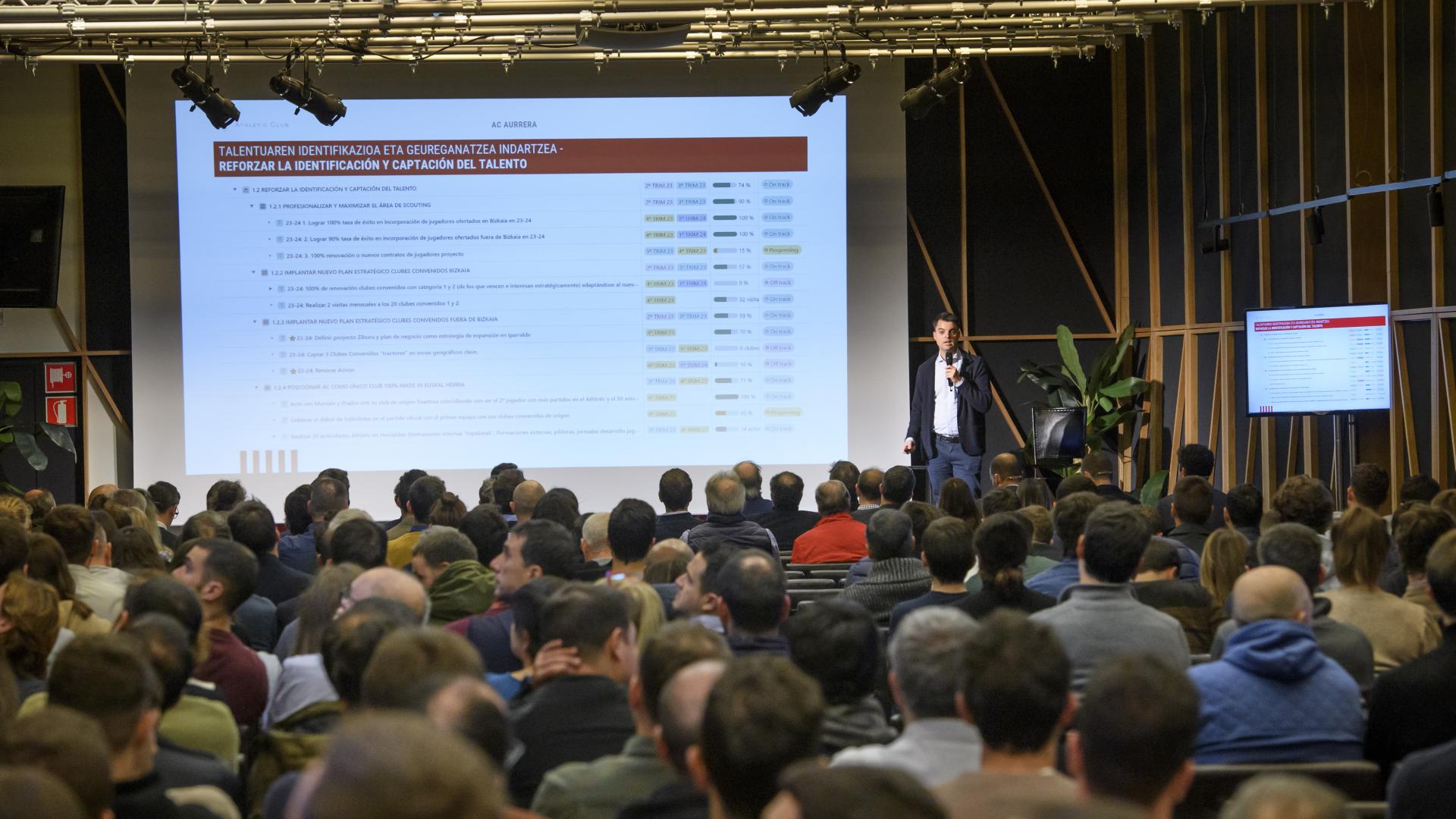 Por segundo año consecutivo, el Athletic Club ha reunido en San Mamés a la totalidad de sus empleados y empleadas, incluidos los primeros equipos, para analizar juntos los avances del Plan de Acción AC Aurrera y comprometerse de nuevo con la hoja de ruta marcada hasta el año 2026.
