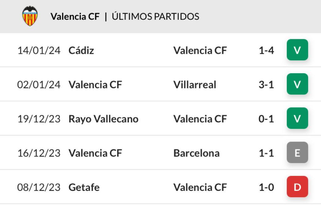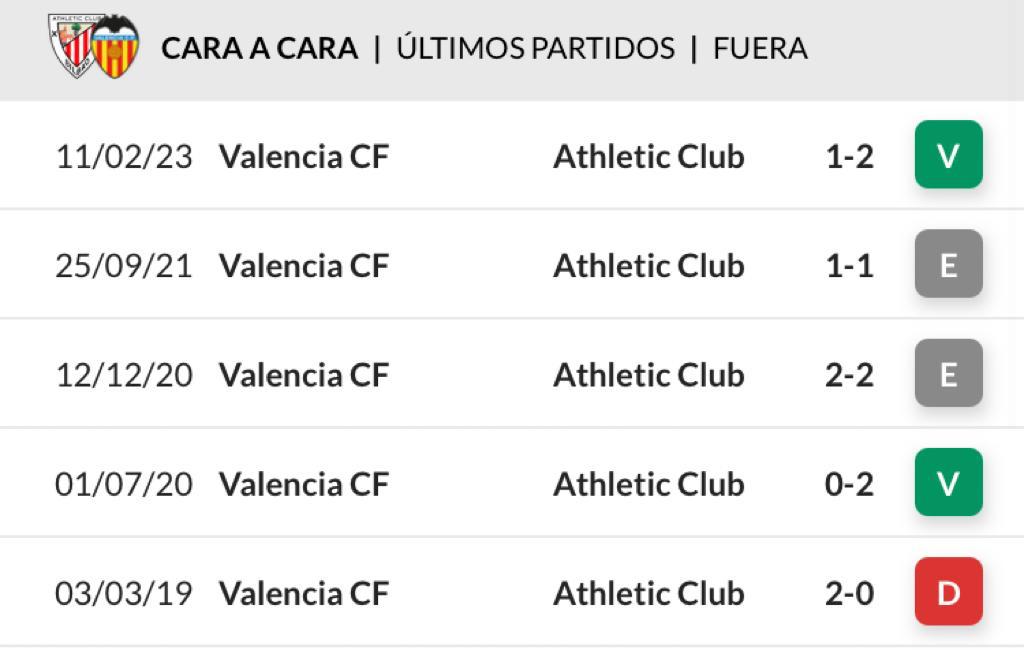 Respecto a los últimos cinco enfrentamientos entre ambos equipos en el feudo valenciano, el balance es favorable para los rojiblancos: una derrota, dos empates y otras dos victorias.