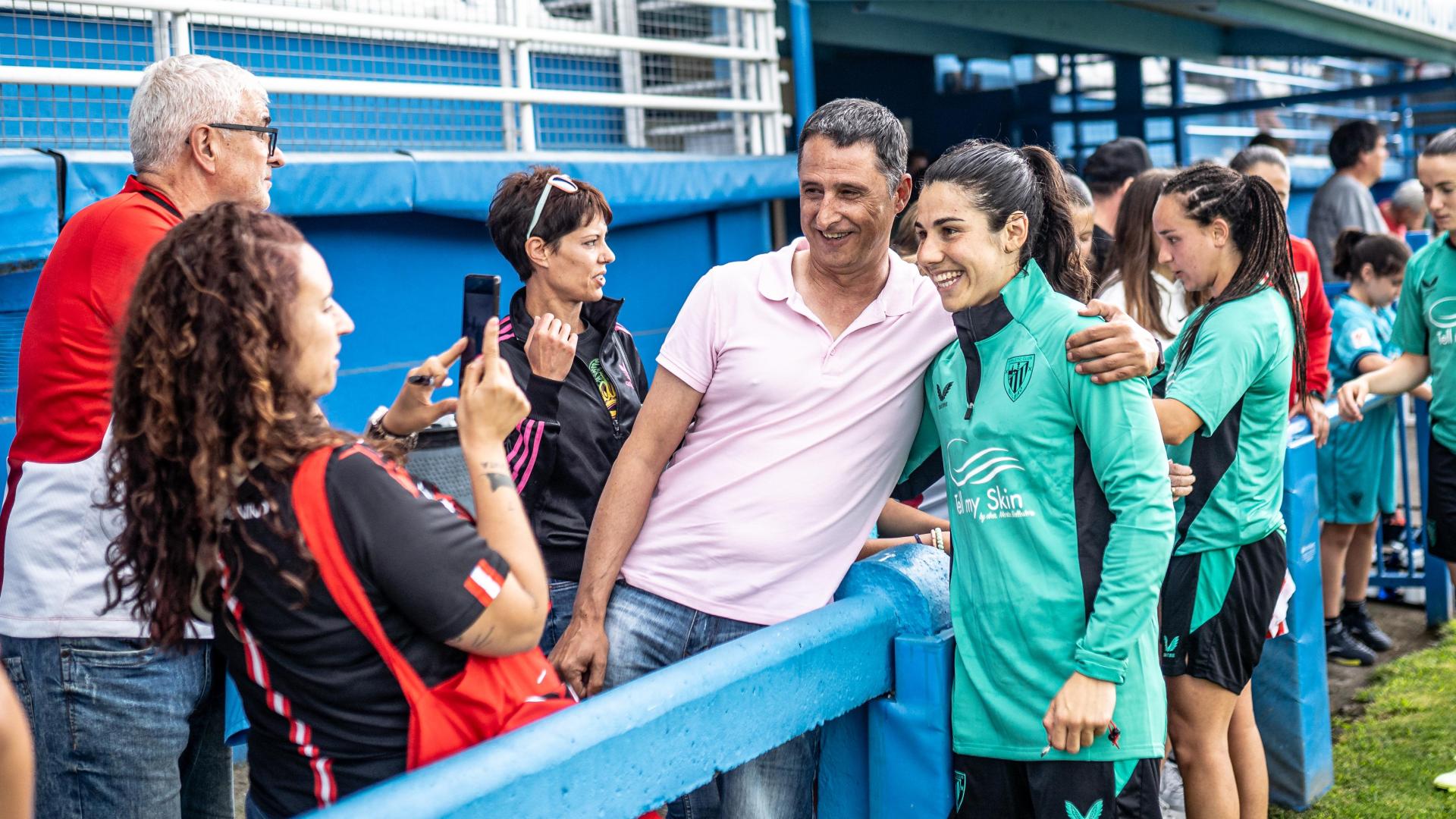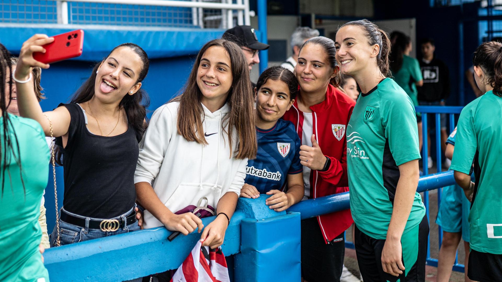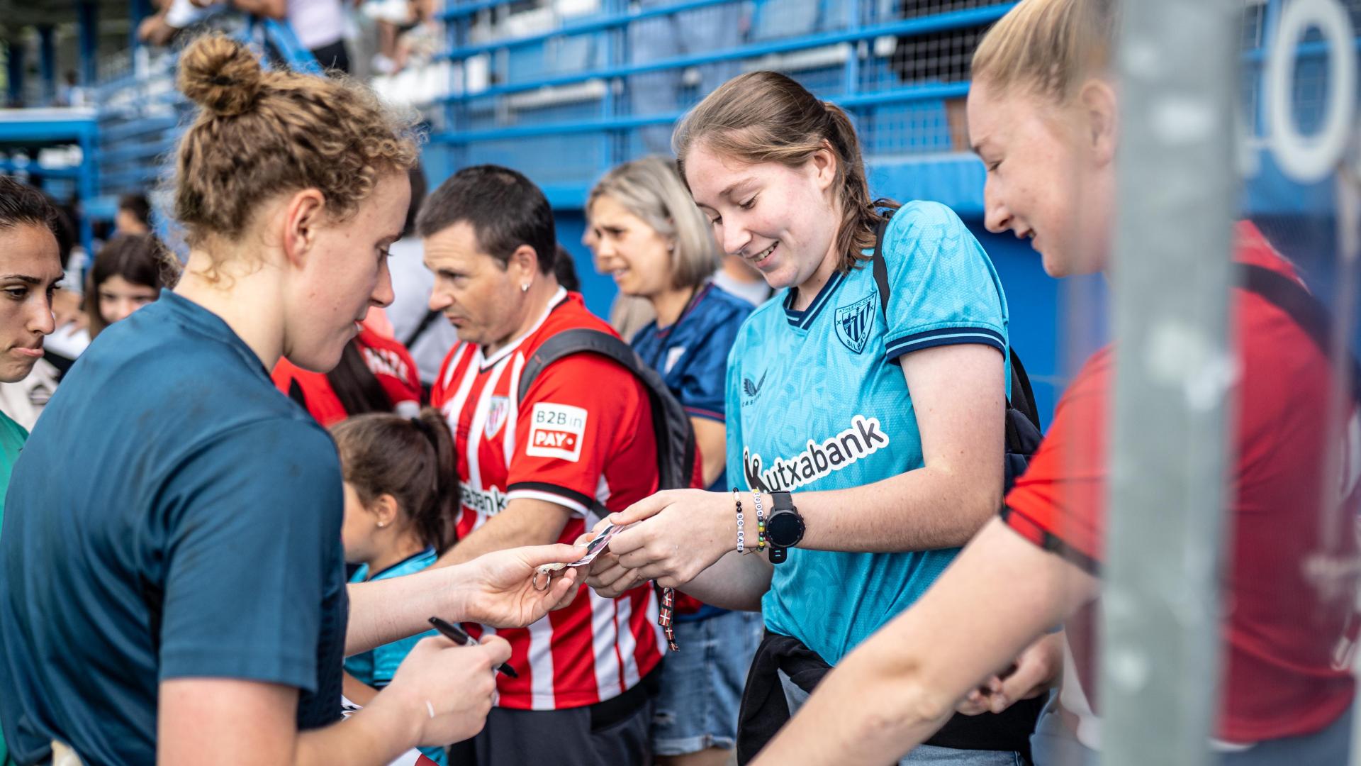 Ya a eso de las 10:30 horas, la plantilla se ha trasladado hasta El Malecón, el campo municipal donde compite la JD Somorrostro donde David Aznar ha dirigido el entrenamiento, ya con balón. Tras una hora de trabajo ha habido tiempo para las fotos y firmas con los y las aficionadas del municipio que se han acercado a la cita. Las zurigorri han recibido con sonrisas los ánimos y devuelto el cariño a la afición athleticzale.