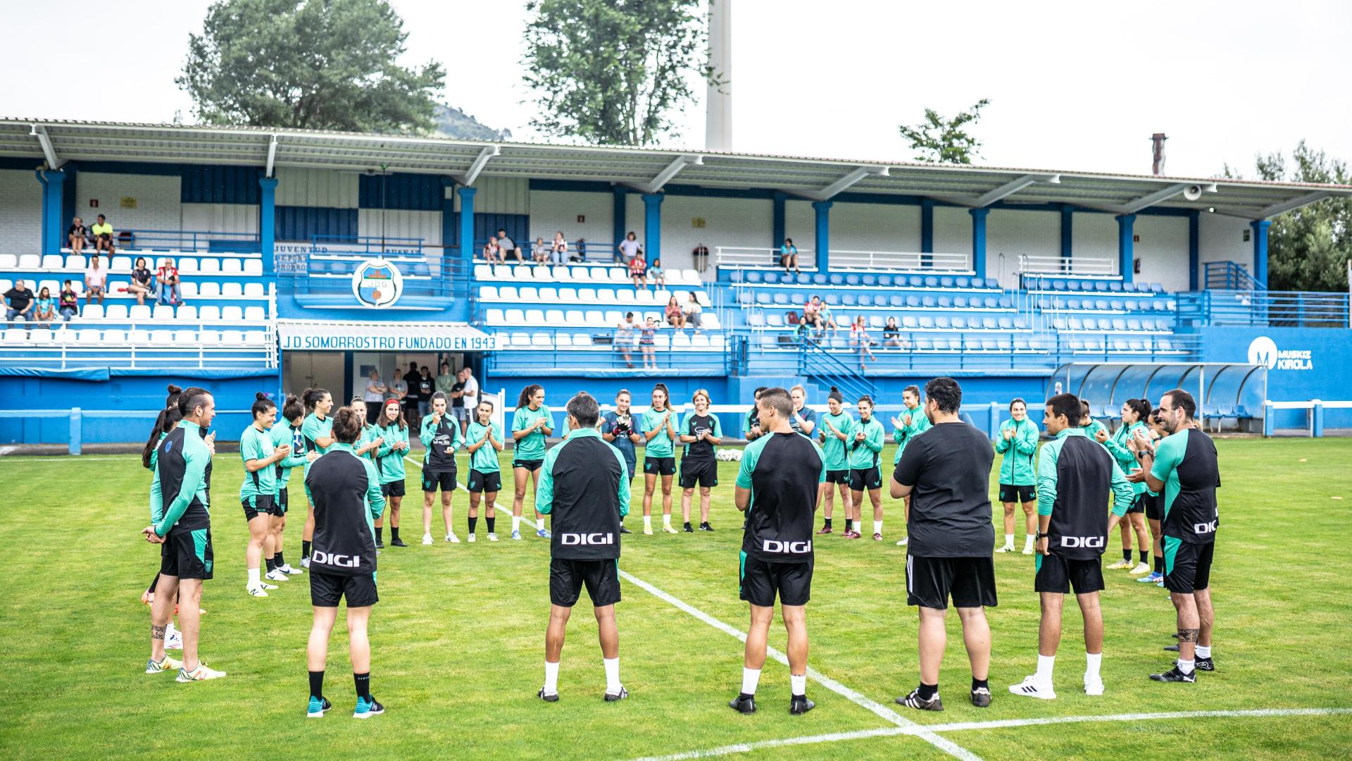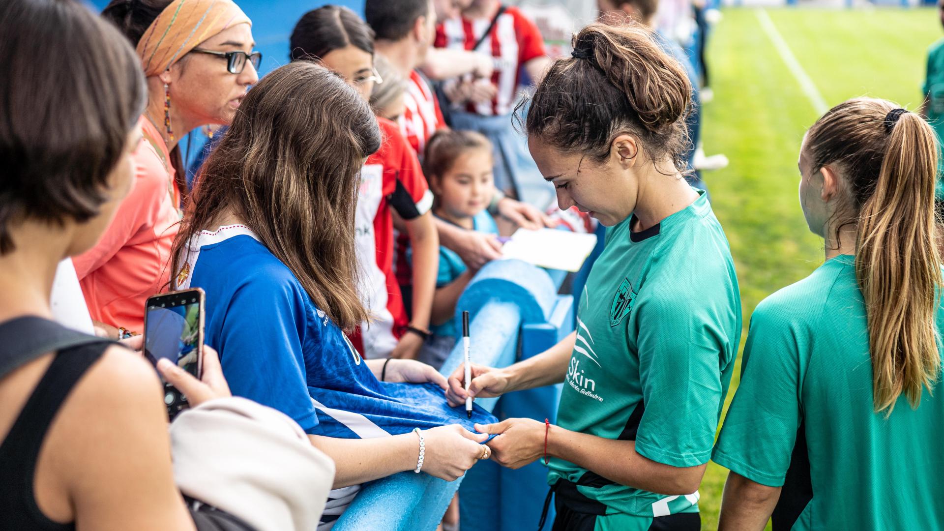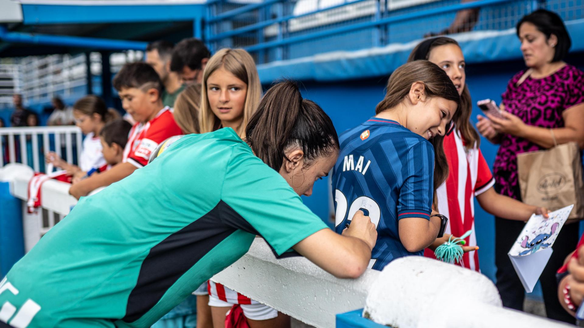 Ya a eso de las 10:30 horas, la plantilla se ha trasladado hasta El Malecón, el campo municipal donde compite la JD Somorrostro donde David Aznar ha dirigido el entrenamiento, ya con balón. Tras una hora de trabajo ha habido tiempo para las fotos y firmas con los y las aficionadas del municipio que se han acercado a la cita. Las zurigorri han recibido con sonrisas los ánimos y devuelto el cariño a la afición athleticzale.