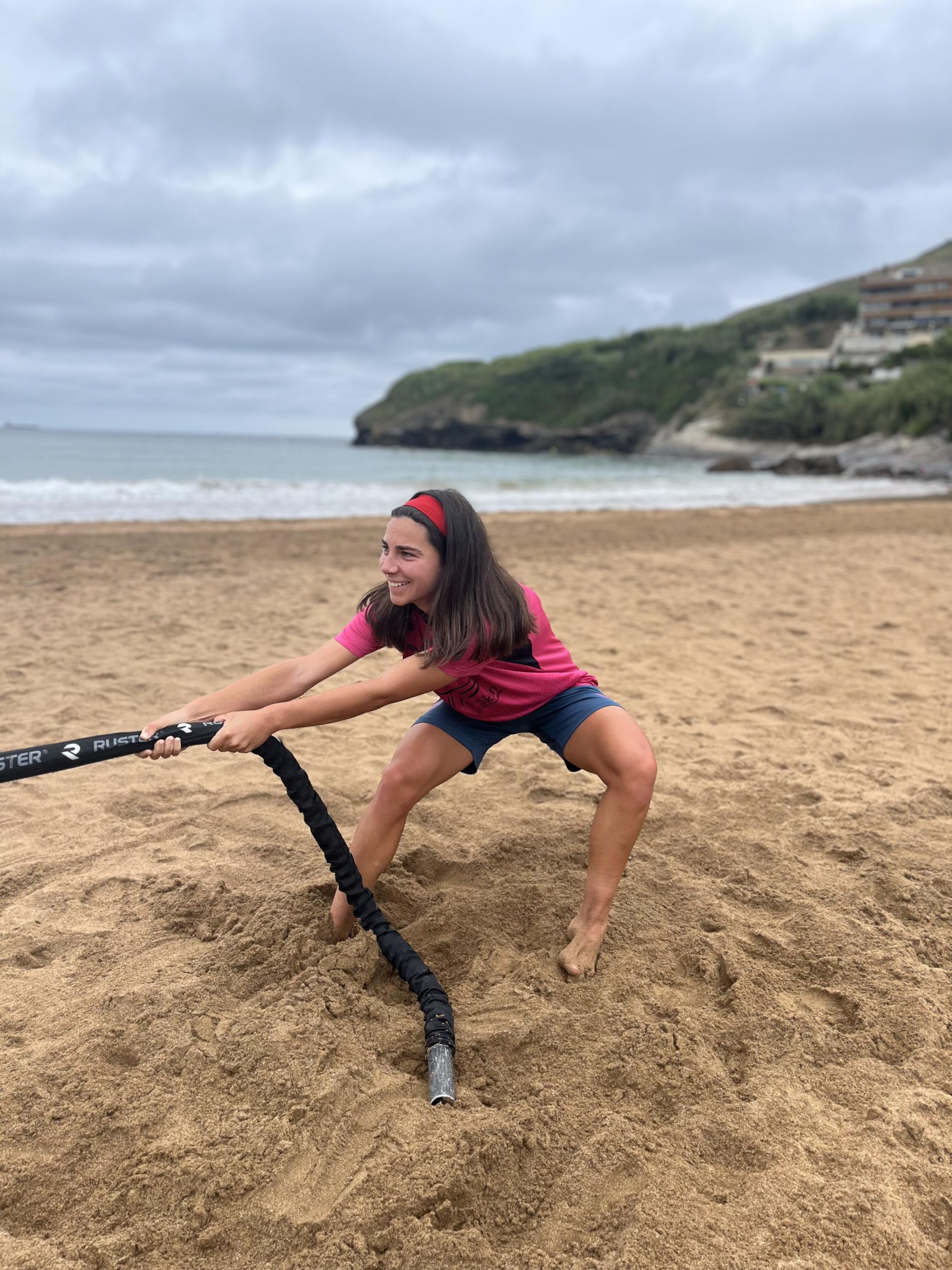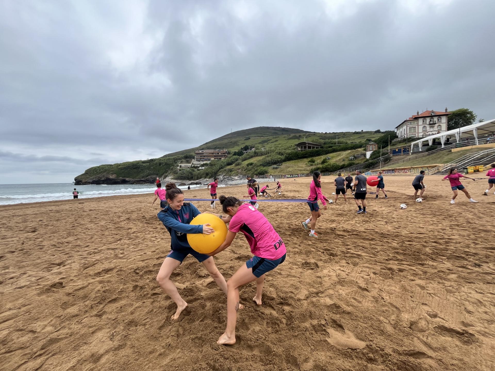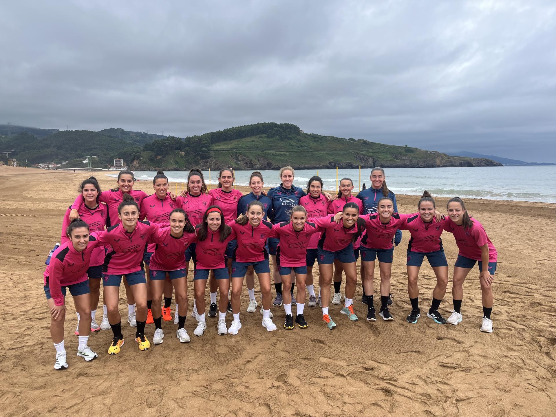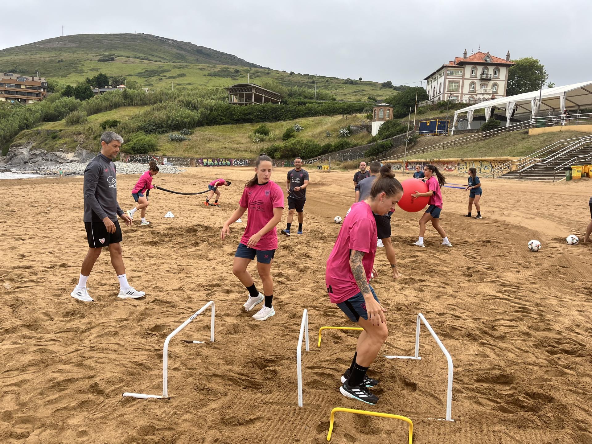 Con la temperatura ideal y sin calor, el primer equipo femenino ha sumado más rodaje en una pretemporada que comenzó la pasada semana. Es un escenario idílico como lo es la Playa de La Arena, entre las localidades de Muskiz y Zierbena, ha dado comienzo a las 9:00 horas una intensa sesión de trabajo de fuerza y carreras que han acabado con un un buen chapuzón en el caso de algunas futbolistas.