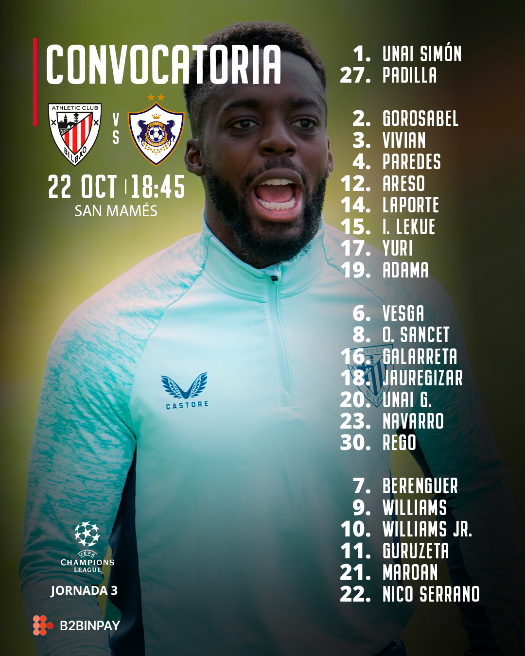Convocatoria: Athletic Club-Qarabag FK (Champions League 2025-26, J3)