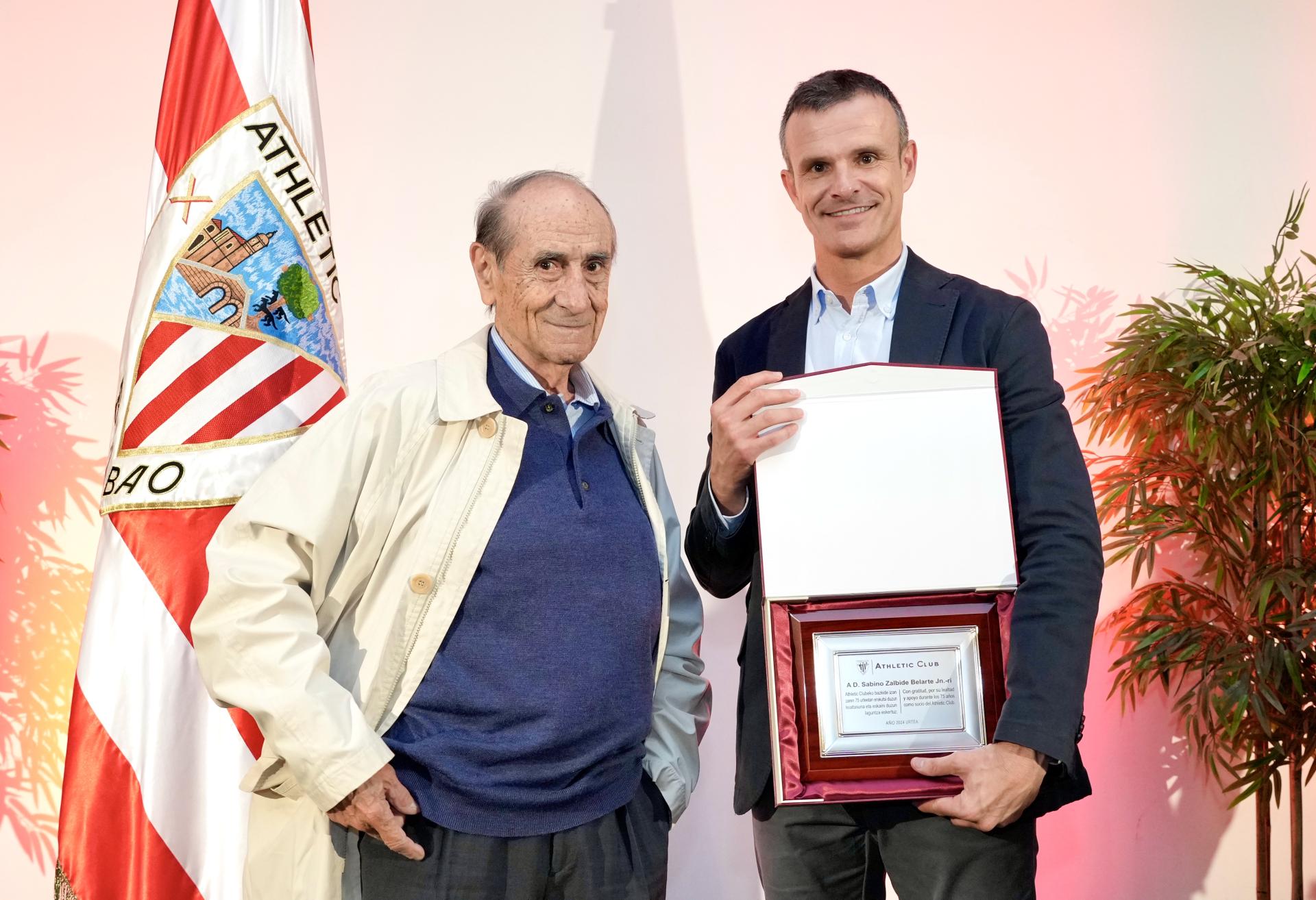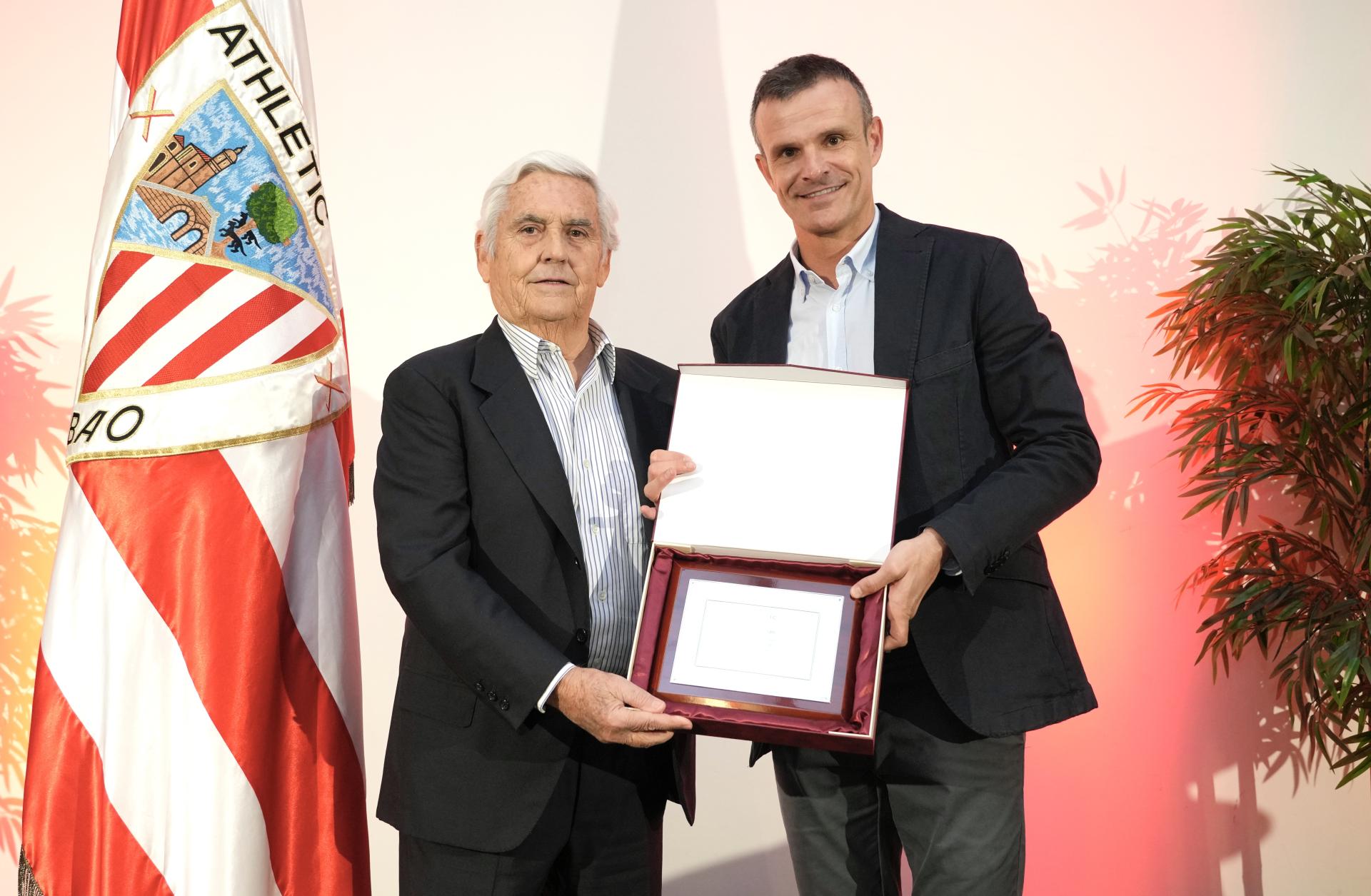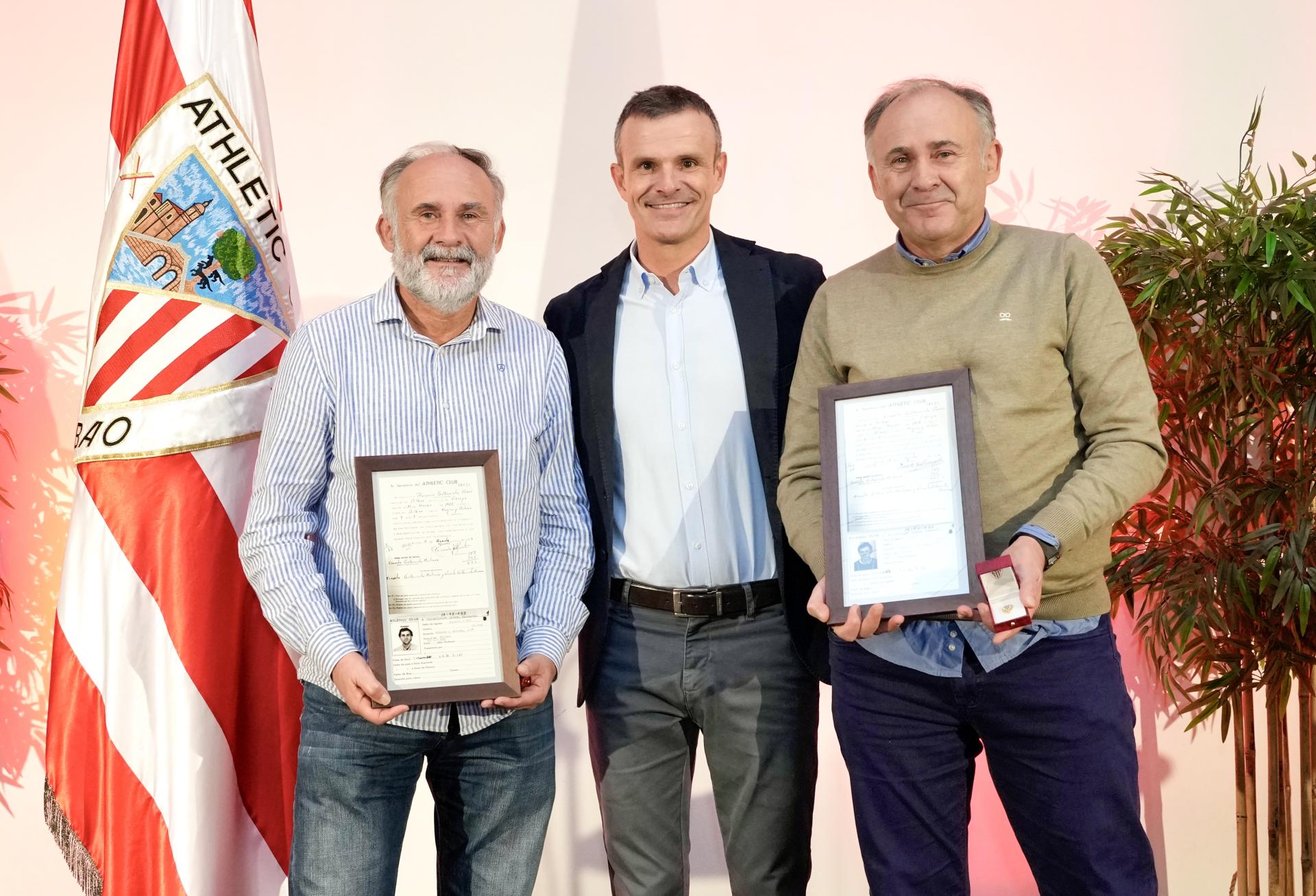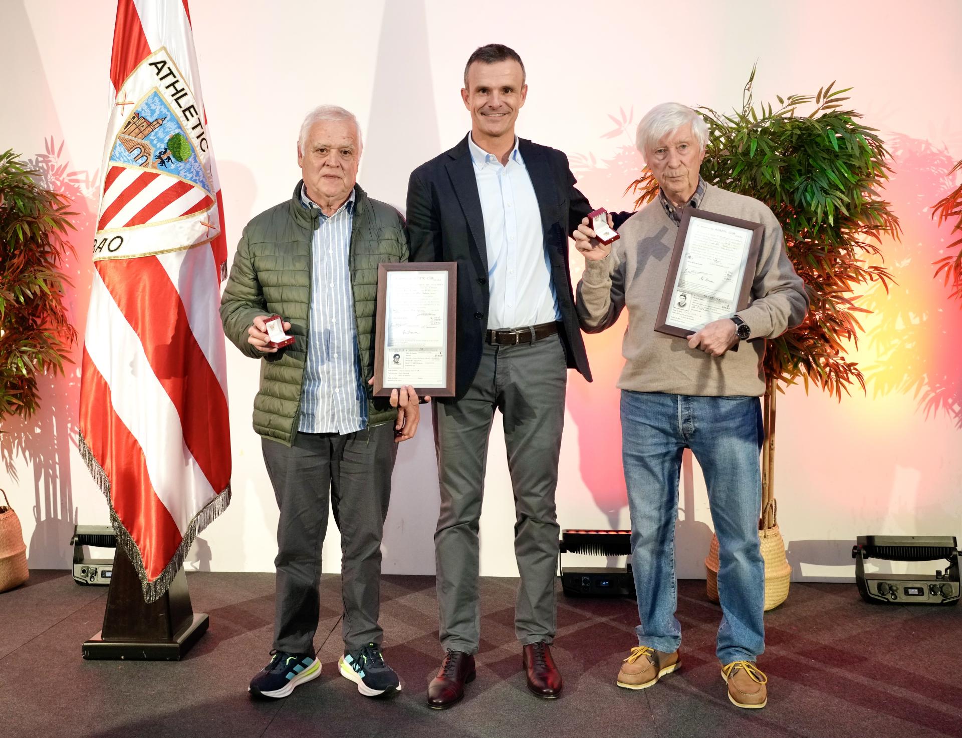 El Club reconoce su lealtad rojiblanca en San Mamés entregándoles las placas conmemorativas y las insignias de oro
