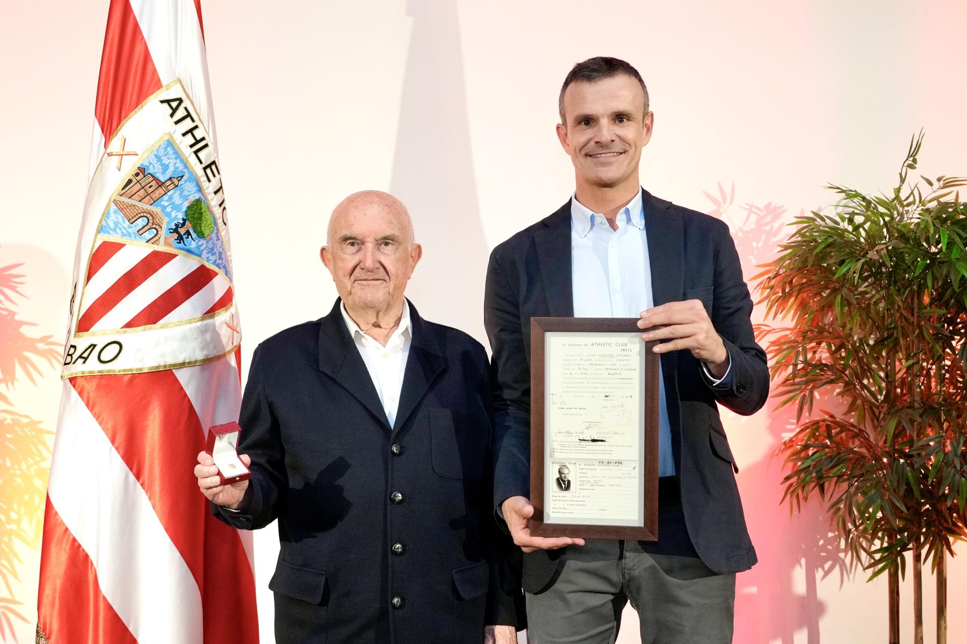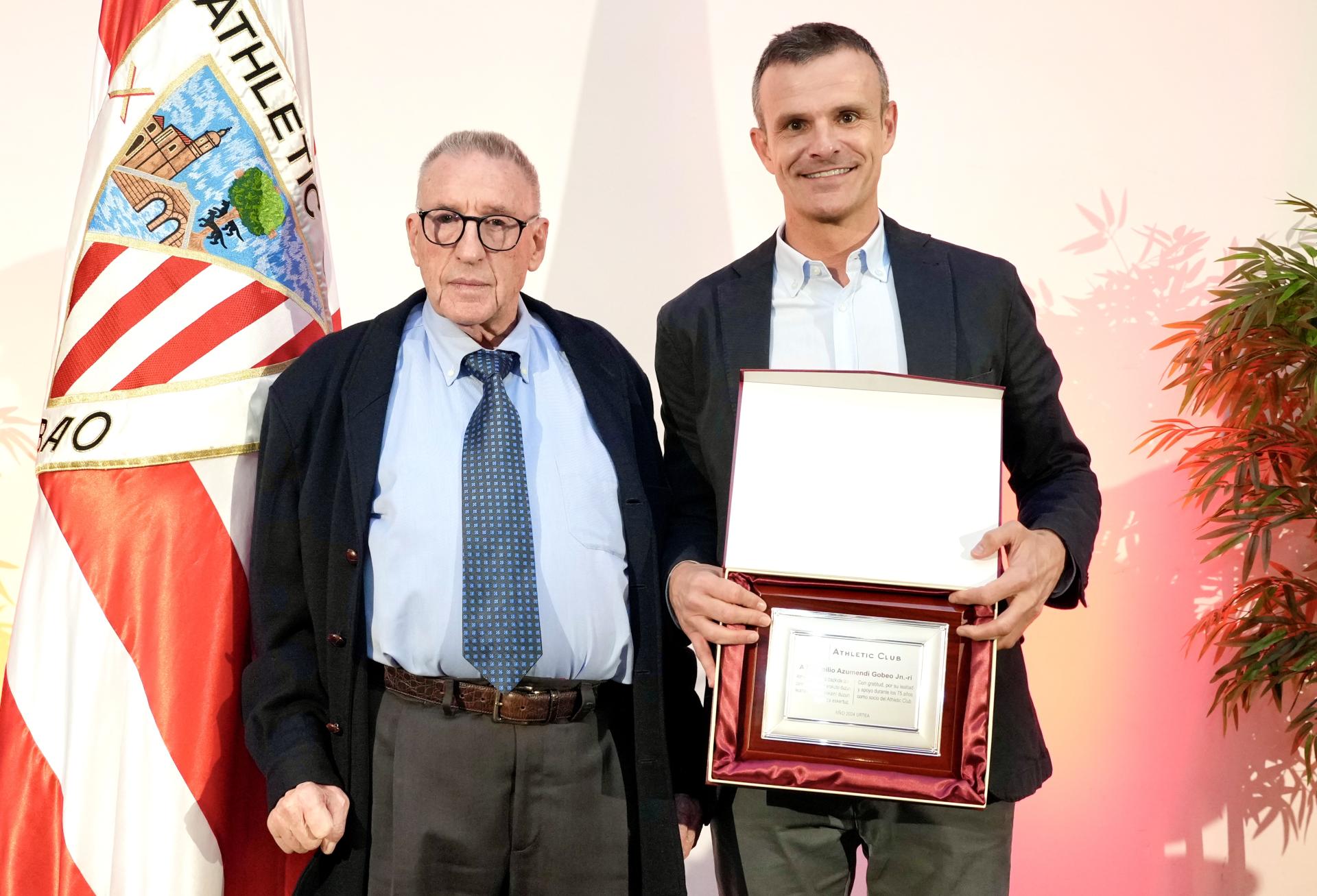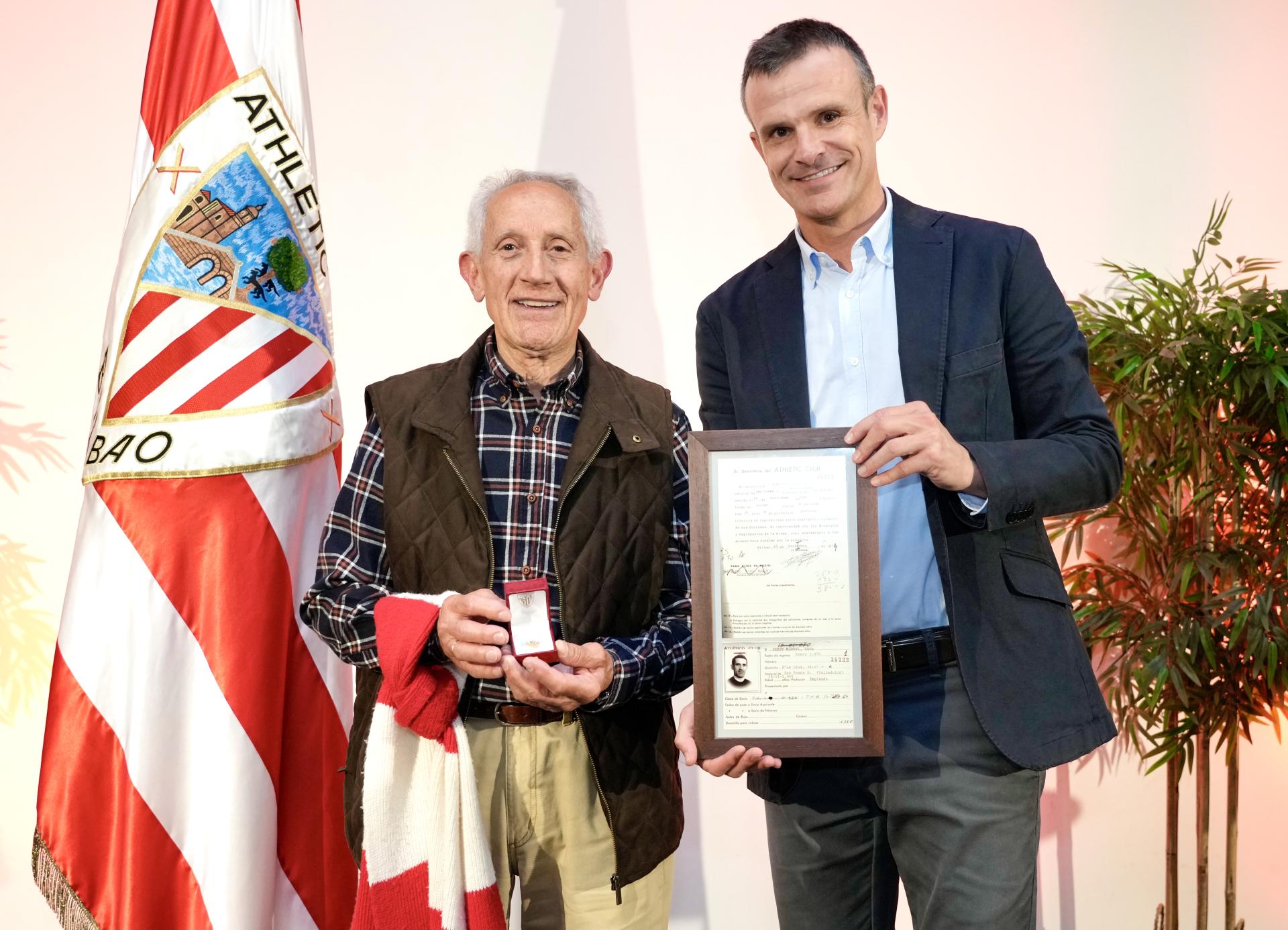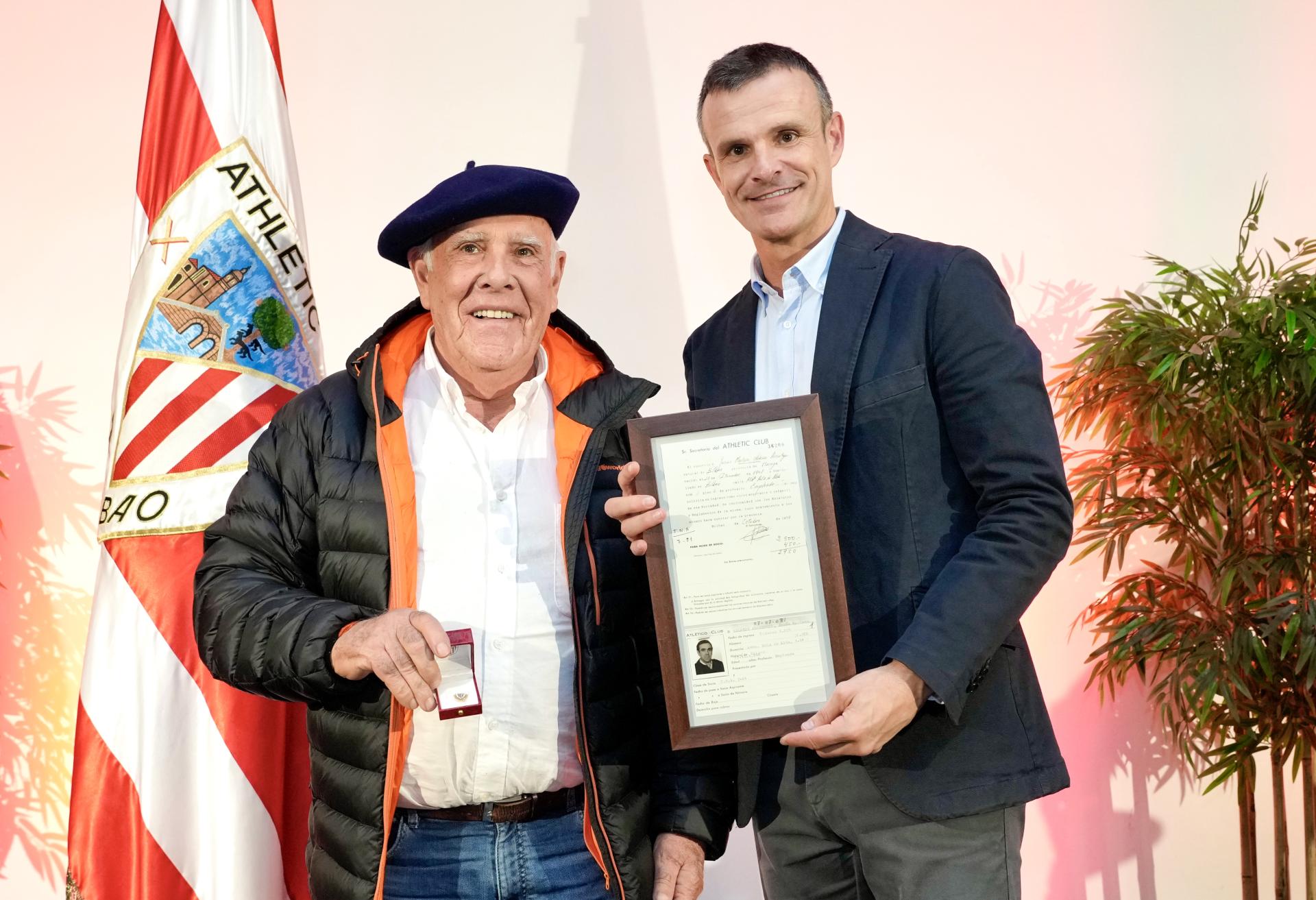 El Club reconoce su lealtad rojiblanca en San Mamés entregándoles las placas conmemorativas y las insignias de oro