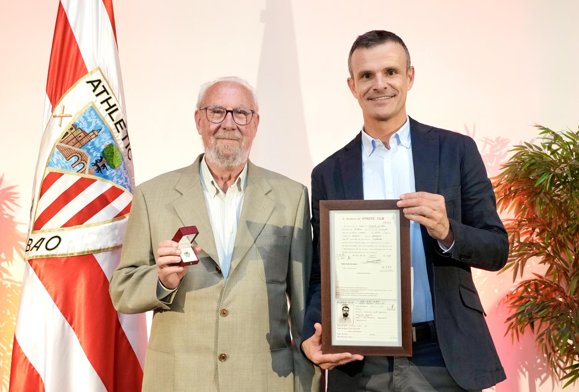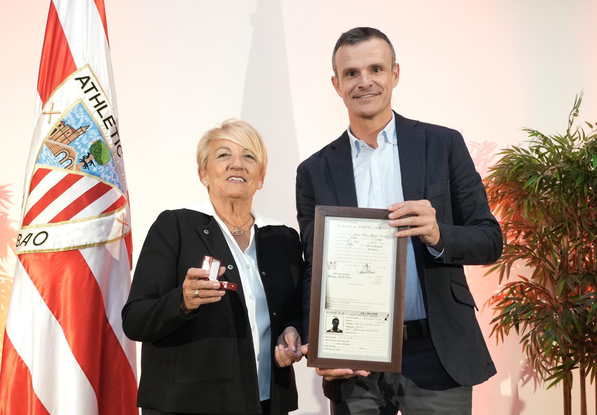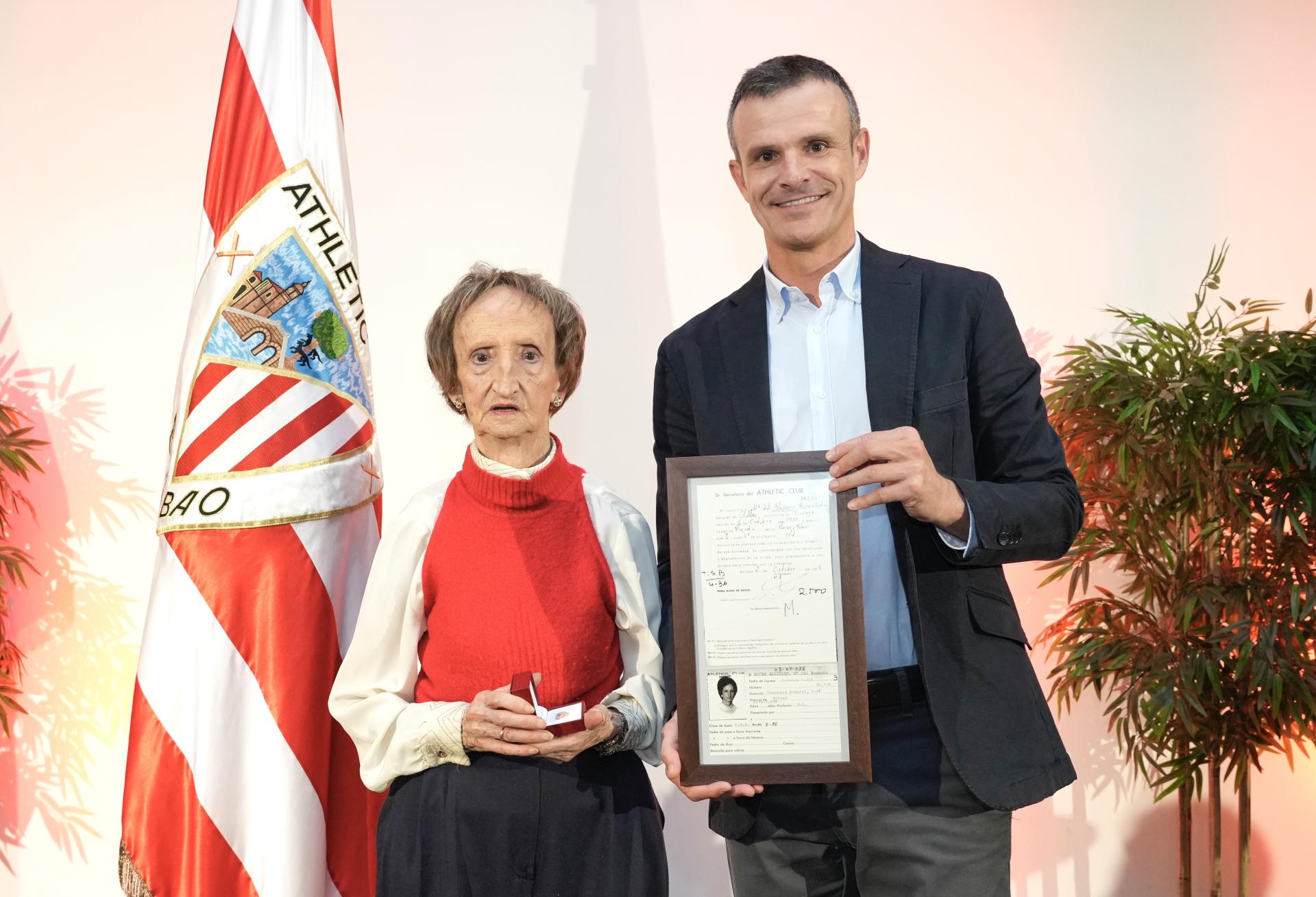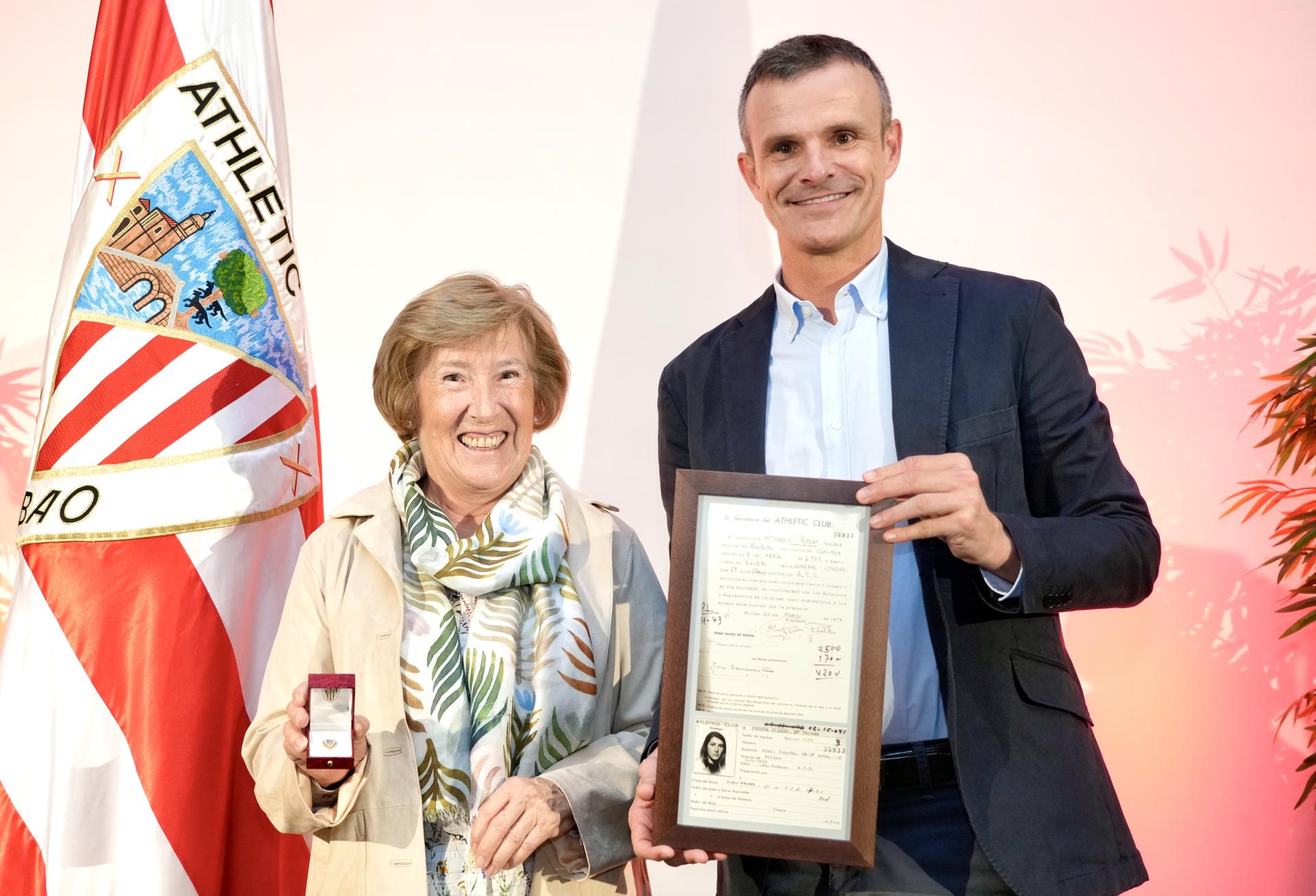 El presidente del Athletic Club, Jon Uriarte, acompañado de la vicepresidenta Nerea Ortiz, ha entregado este jueves en San Mamés las placas conmemorativas a los 45 socios y socias que cumplen 75 años de antigüedad y las insignias de oro a los 148 que celebran 50 años como socios y socias del Club. Un acto entrañable con unos protagonistas que merecen el mayor de los reconocimientos. Personas que encarnan a la perfección la esencia del Athletic: un sentido de pertenencia único, transmitido de generación en generación.