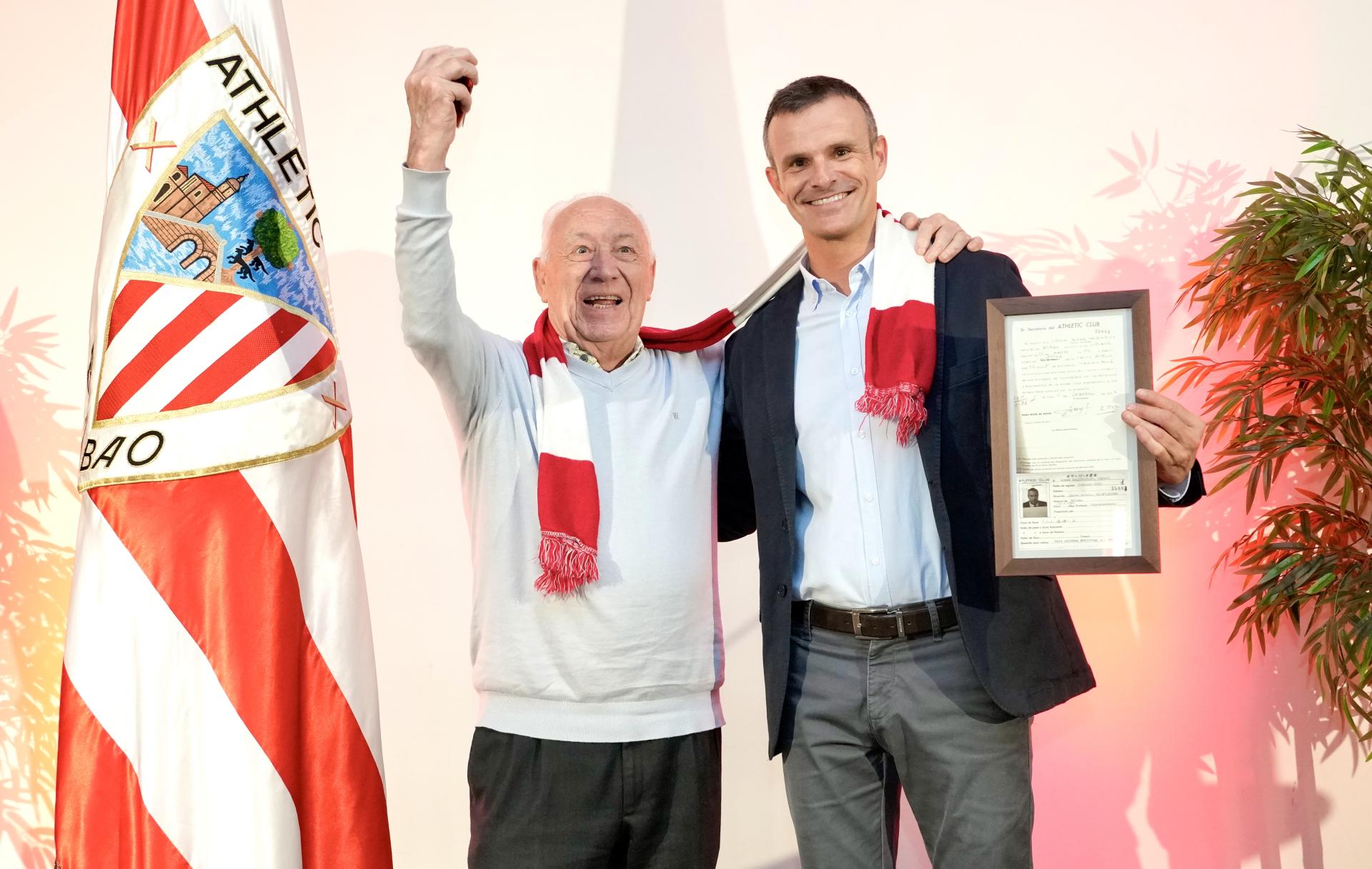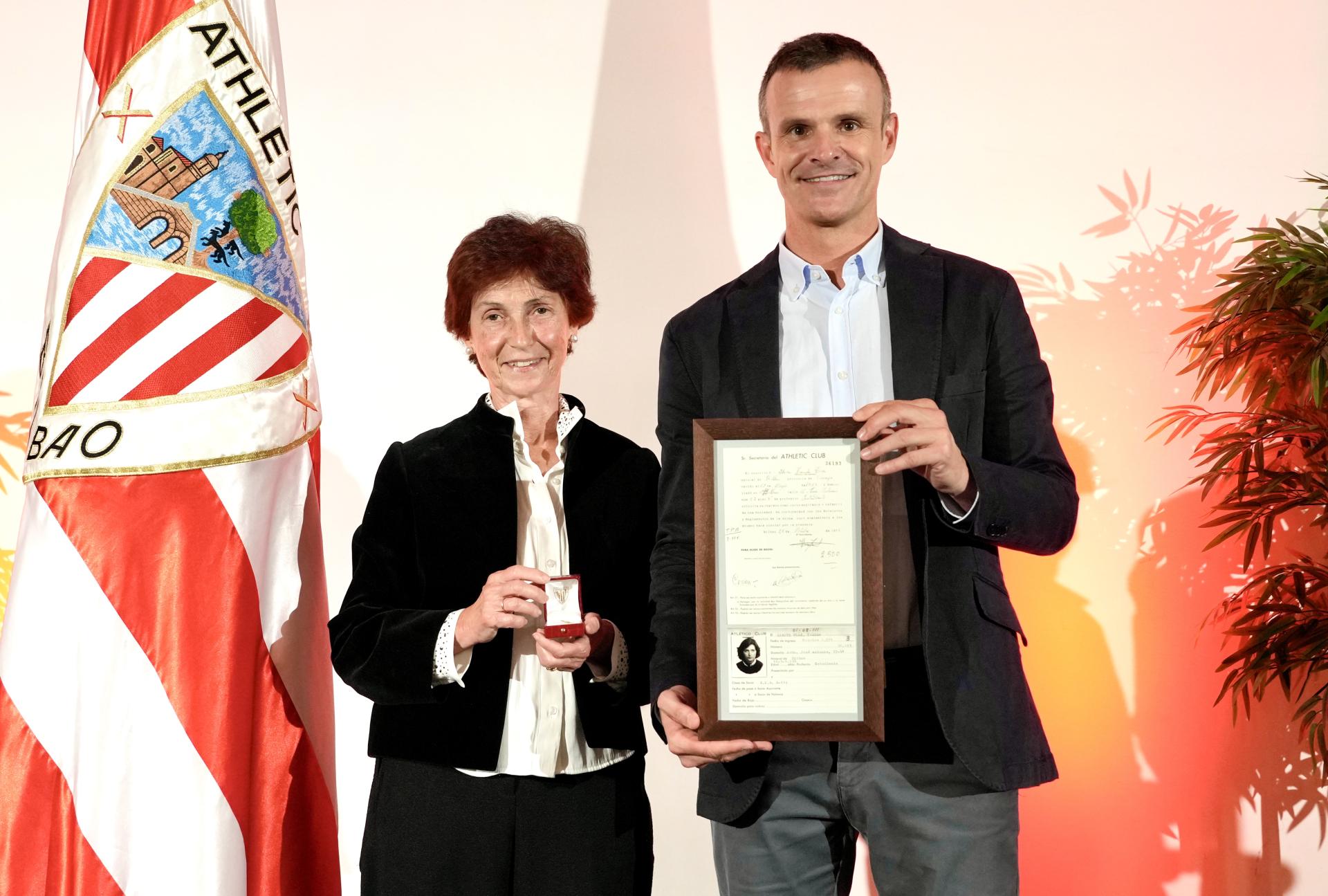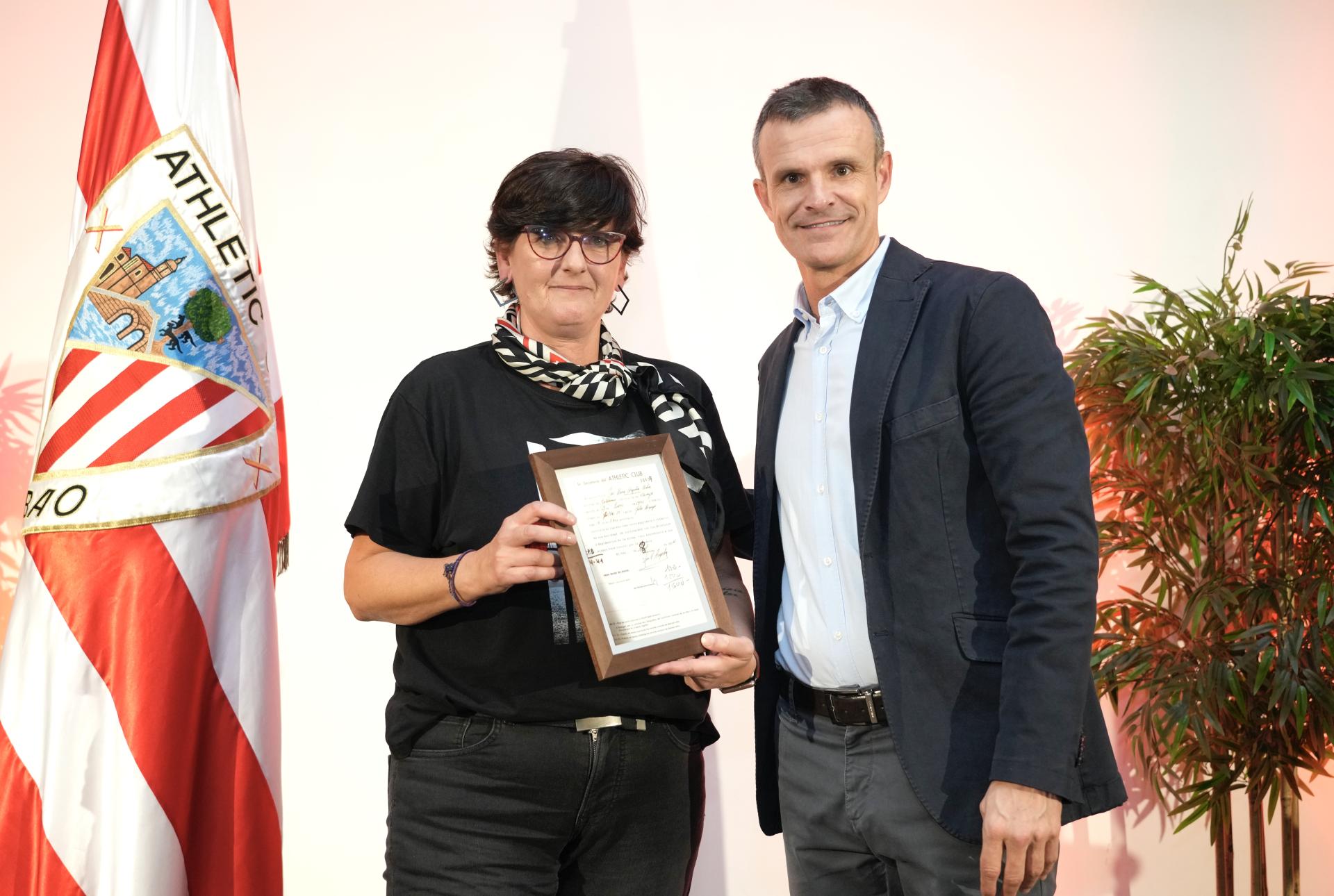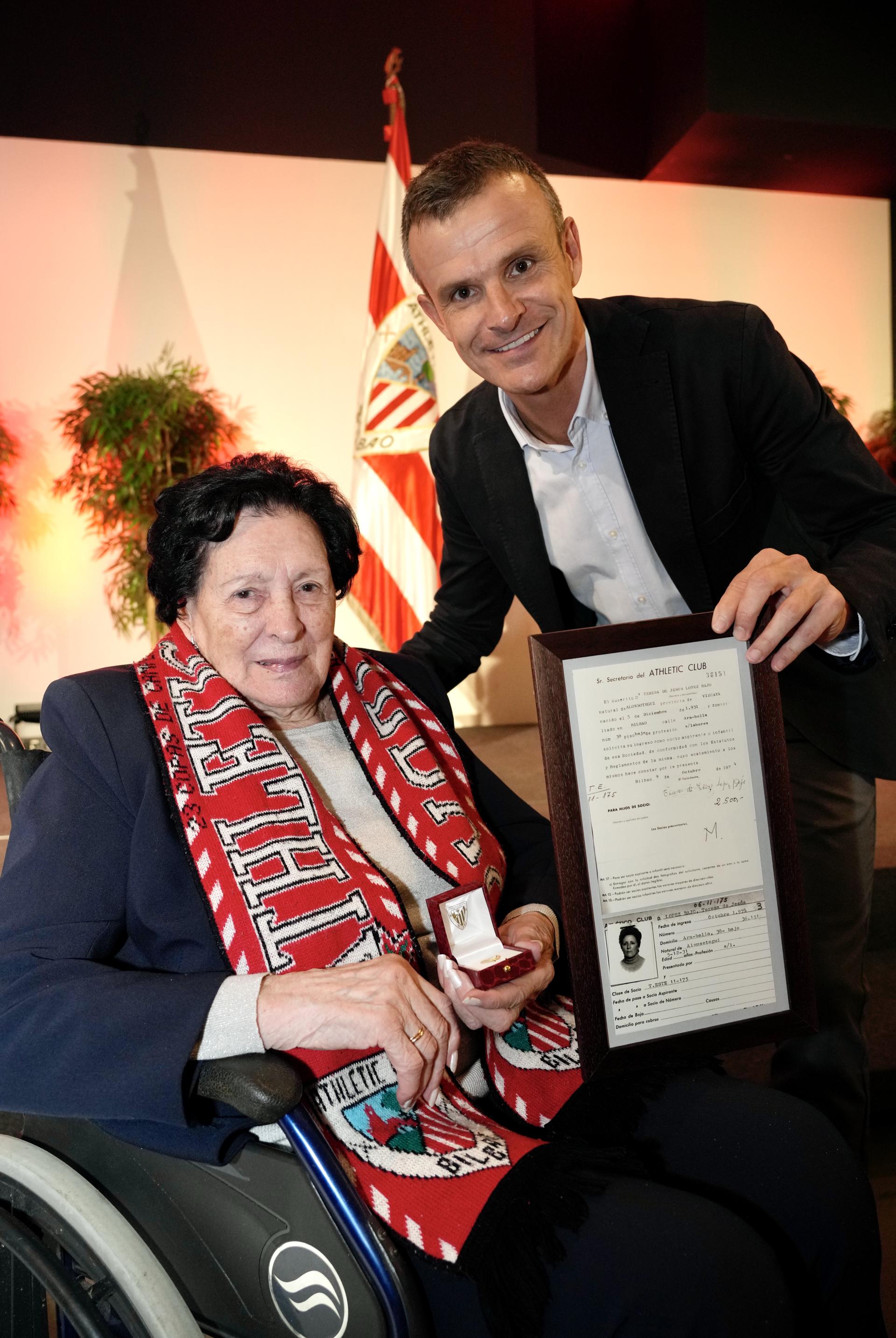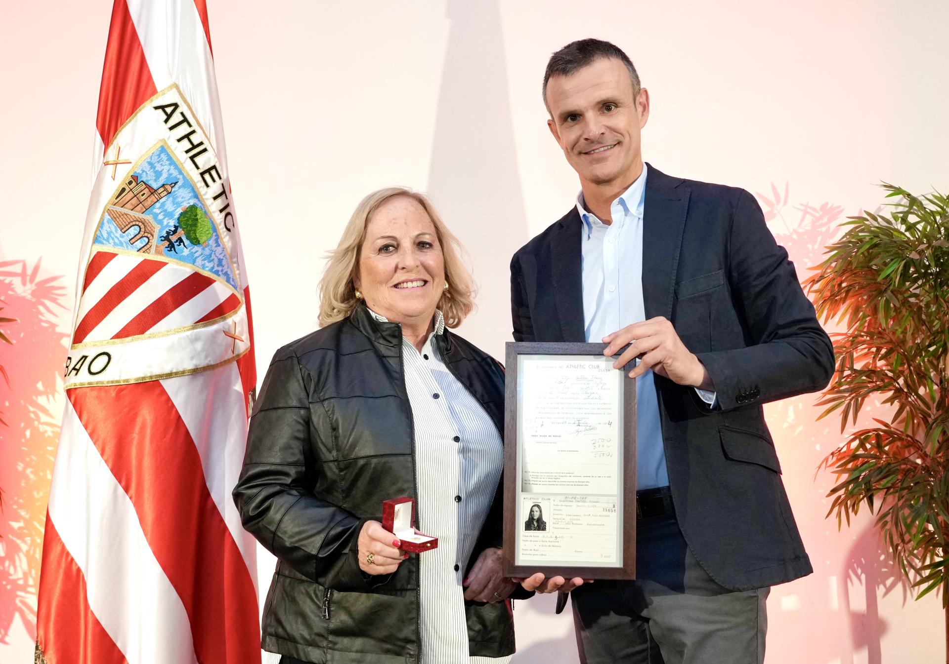 El presidente del Athletic Club, Jon Uriarte, acompañado de la vicepresidenta Nerea Ortiz, ha entregado este jueves en San Mamés las placas conmemorativas a los 45 socios y socias que cumplen 75 años de antigüedad y las insignias de oro a los 148 que celebran 50 años como socios y socias del Club. Un acto entrañable con unos protagonistas que merecen el mayor de los reconocimientos. Personas que encarnan a la perfección la esencia del Athletic: un sentido de pertenencia único, transmitido de generación en generación.