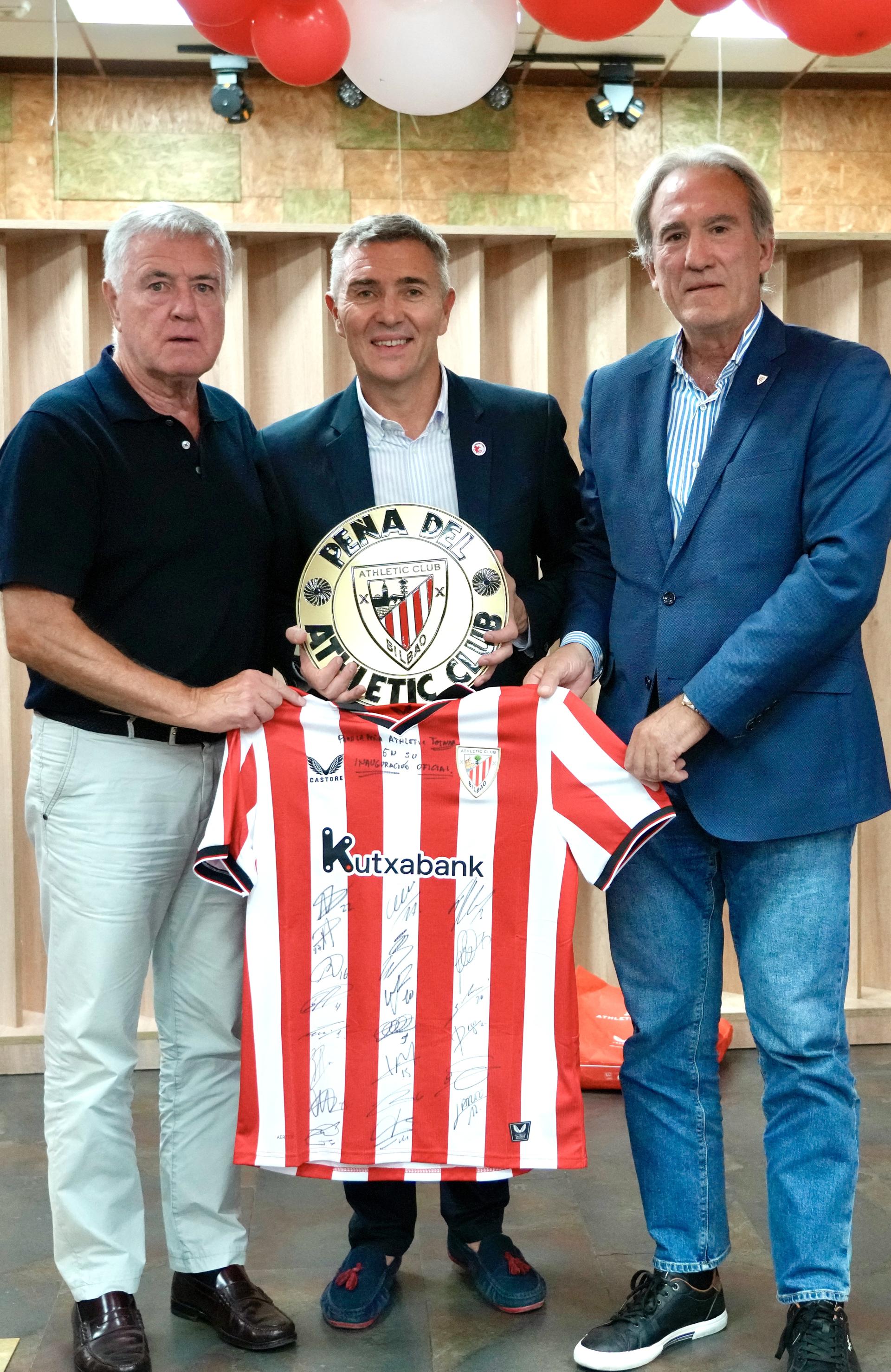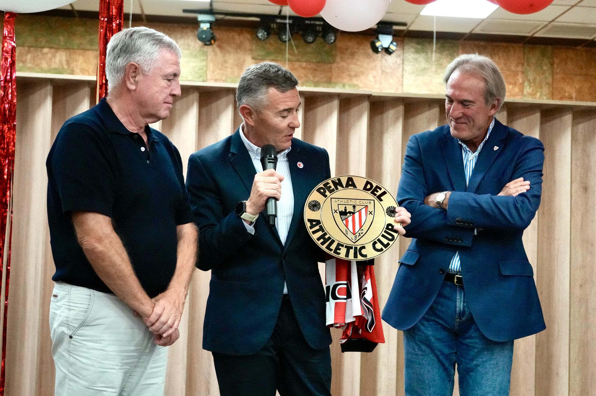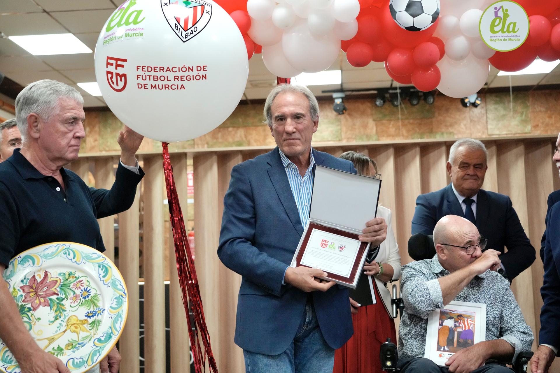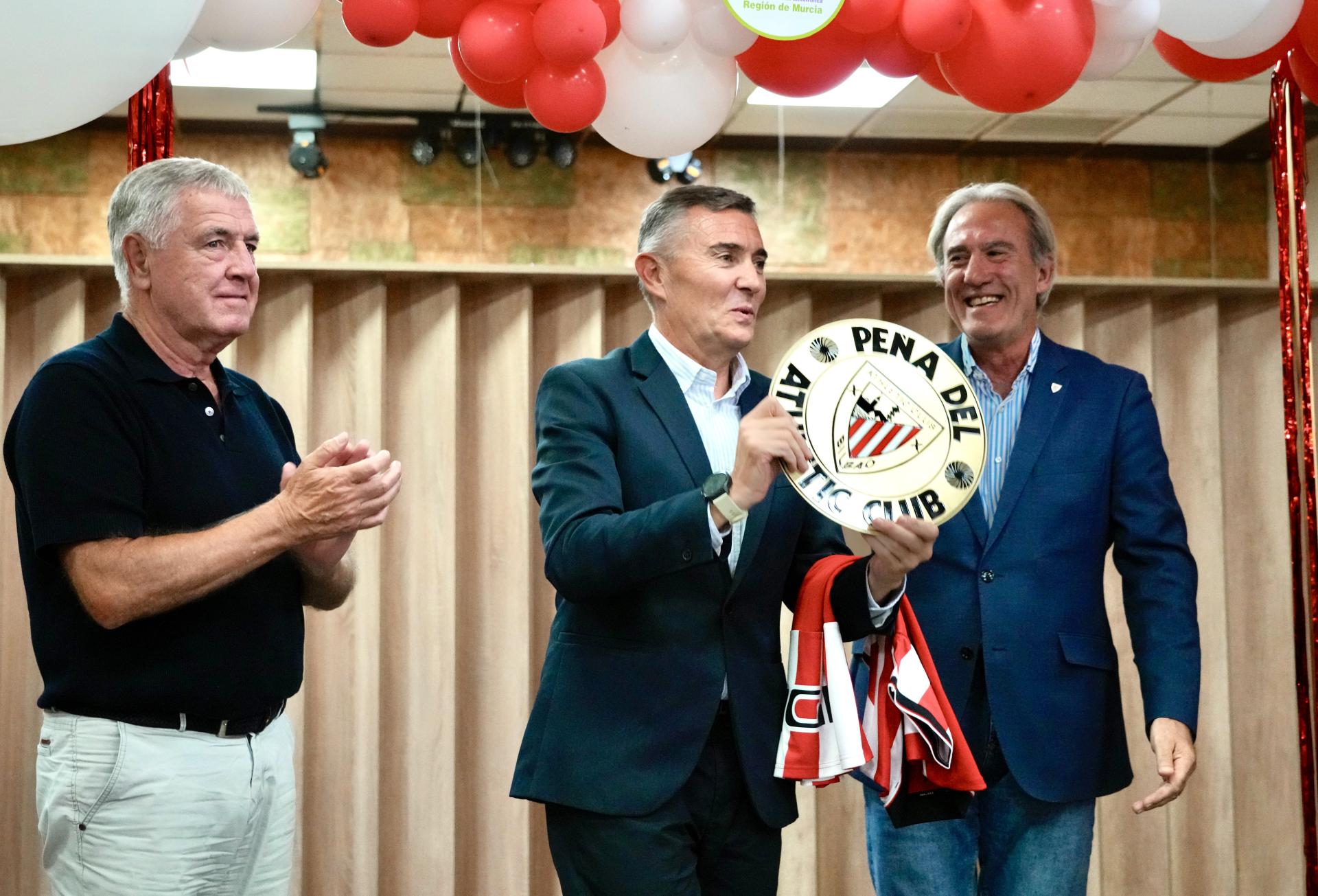 Andoni Goikoetxea, en nombre del Athletic Club, fue el encargado de hacer entrega de la placa dorada que confirma la presencia de Totana en la familia peñista rojiblanca.